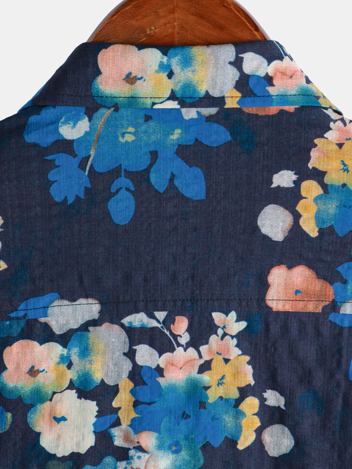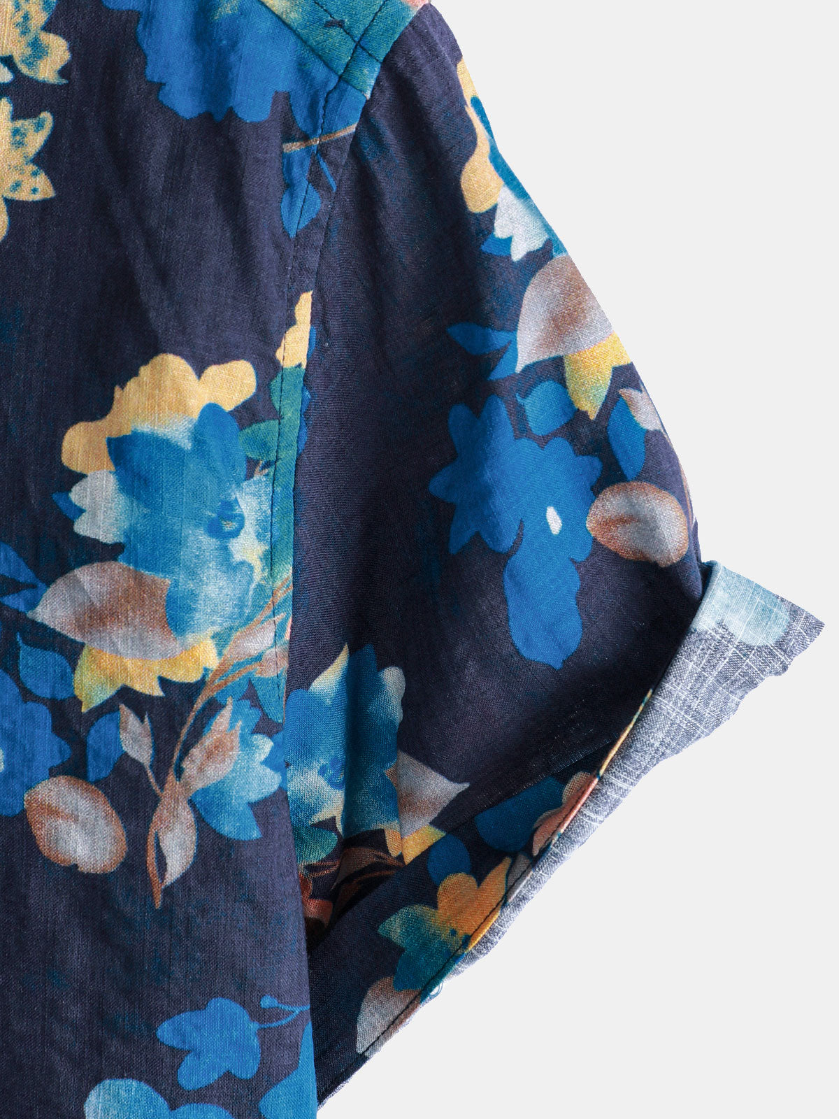 Chemise de plage décontractée à manches courtes en coton à fleurs pour homme