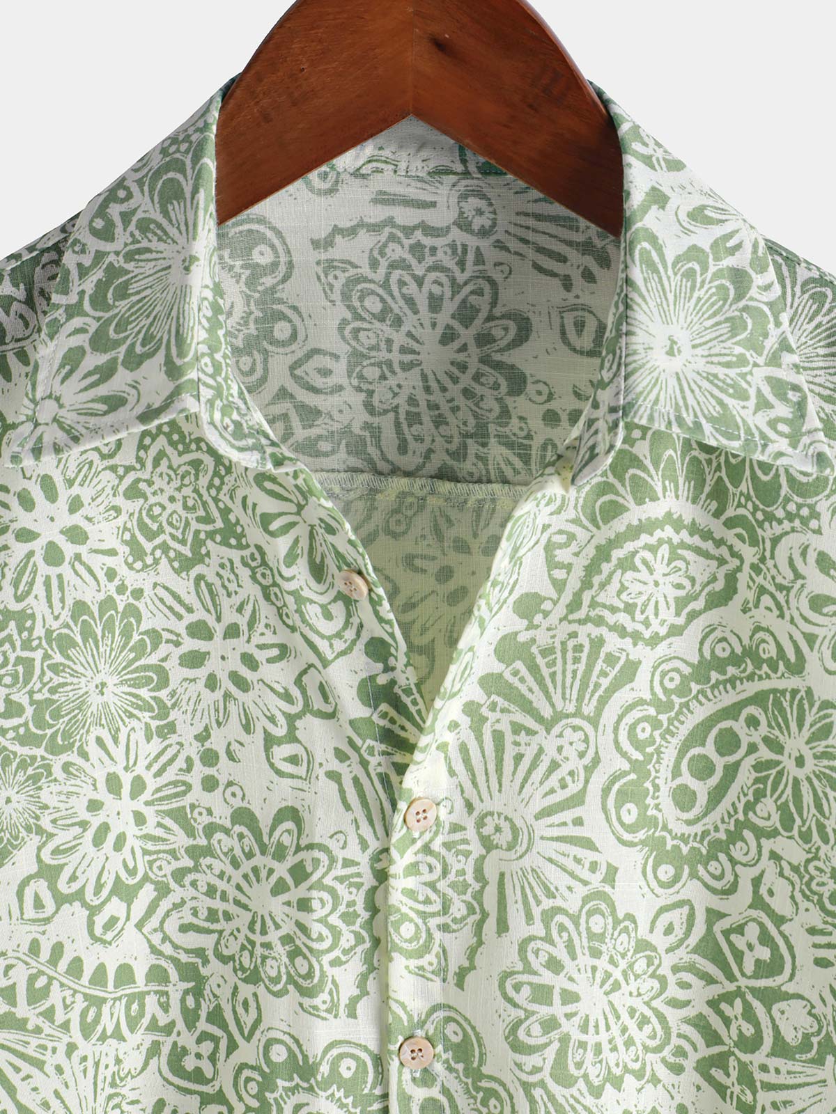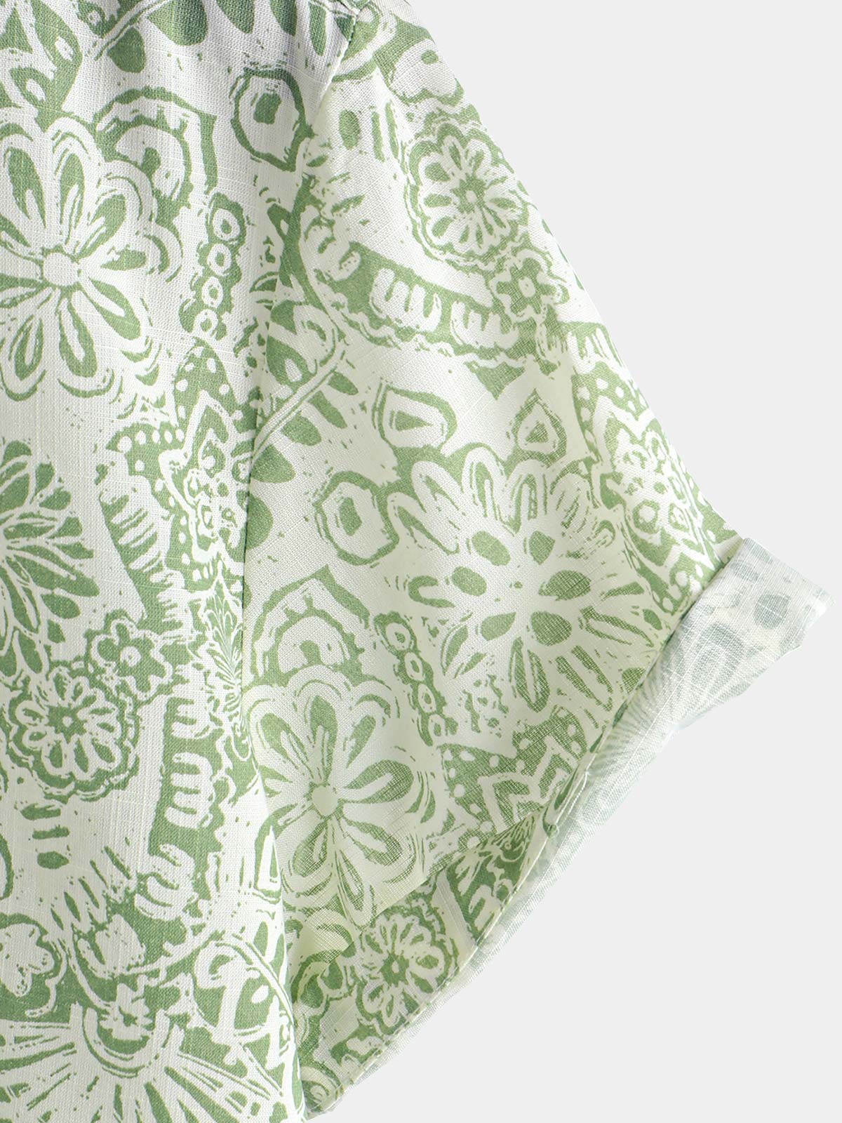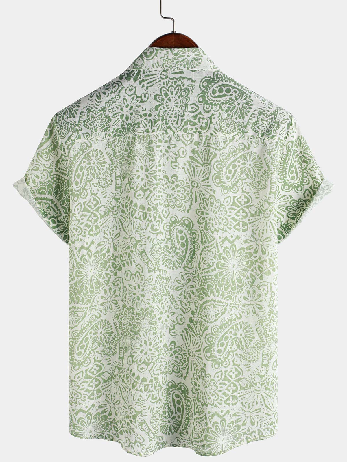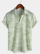 Chemise d'été boutonnée à manches courtes et motif floral vert pour homme