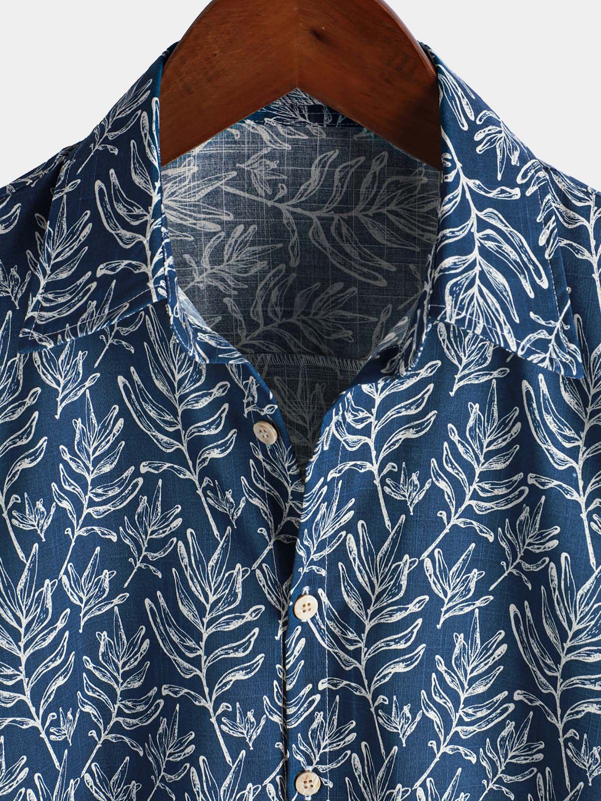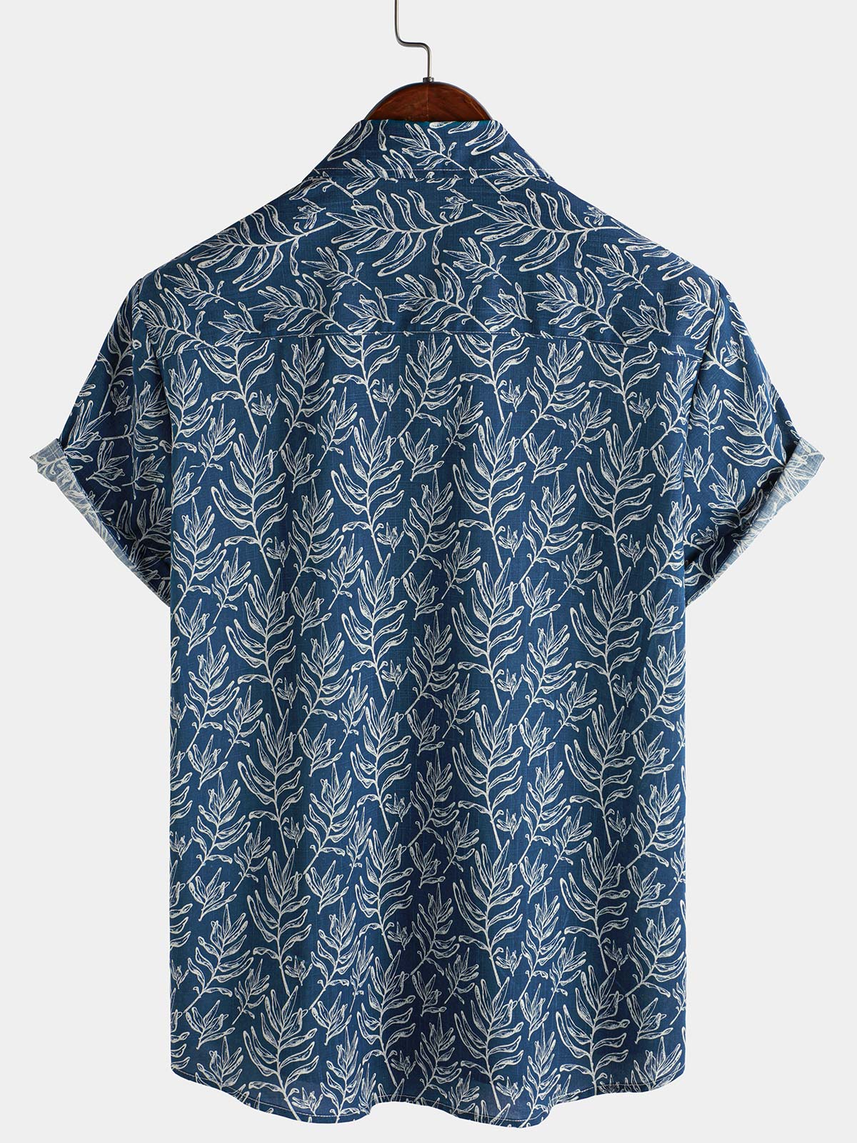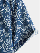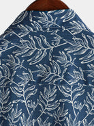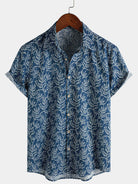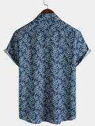 Chemise d'été boutonnée à manches courtes bleu marine tropical pour homme