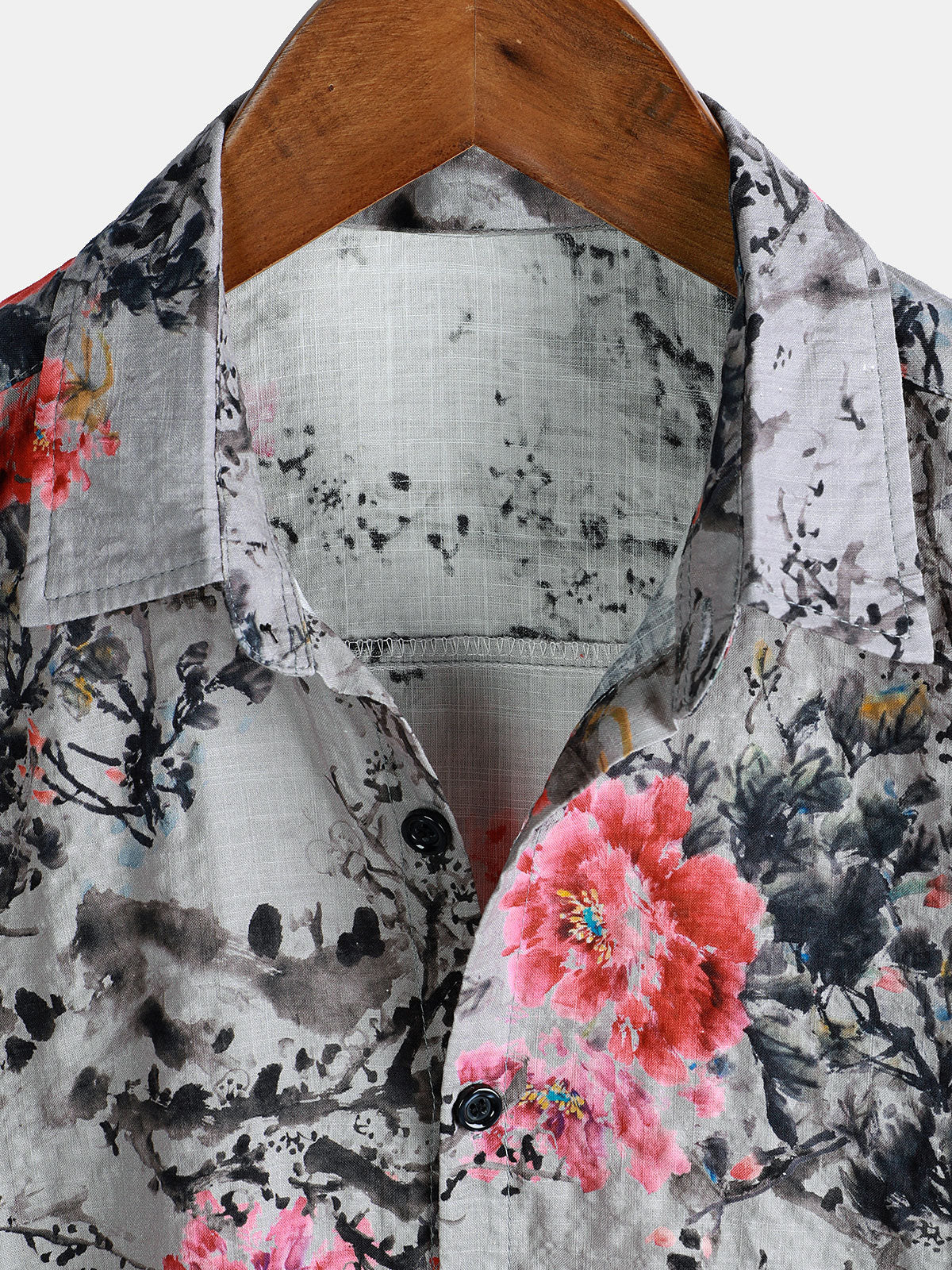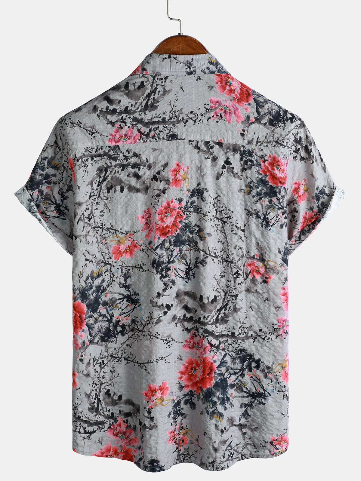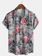 Chemise à manches courtes à fleurs roses pour homme