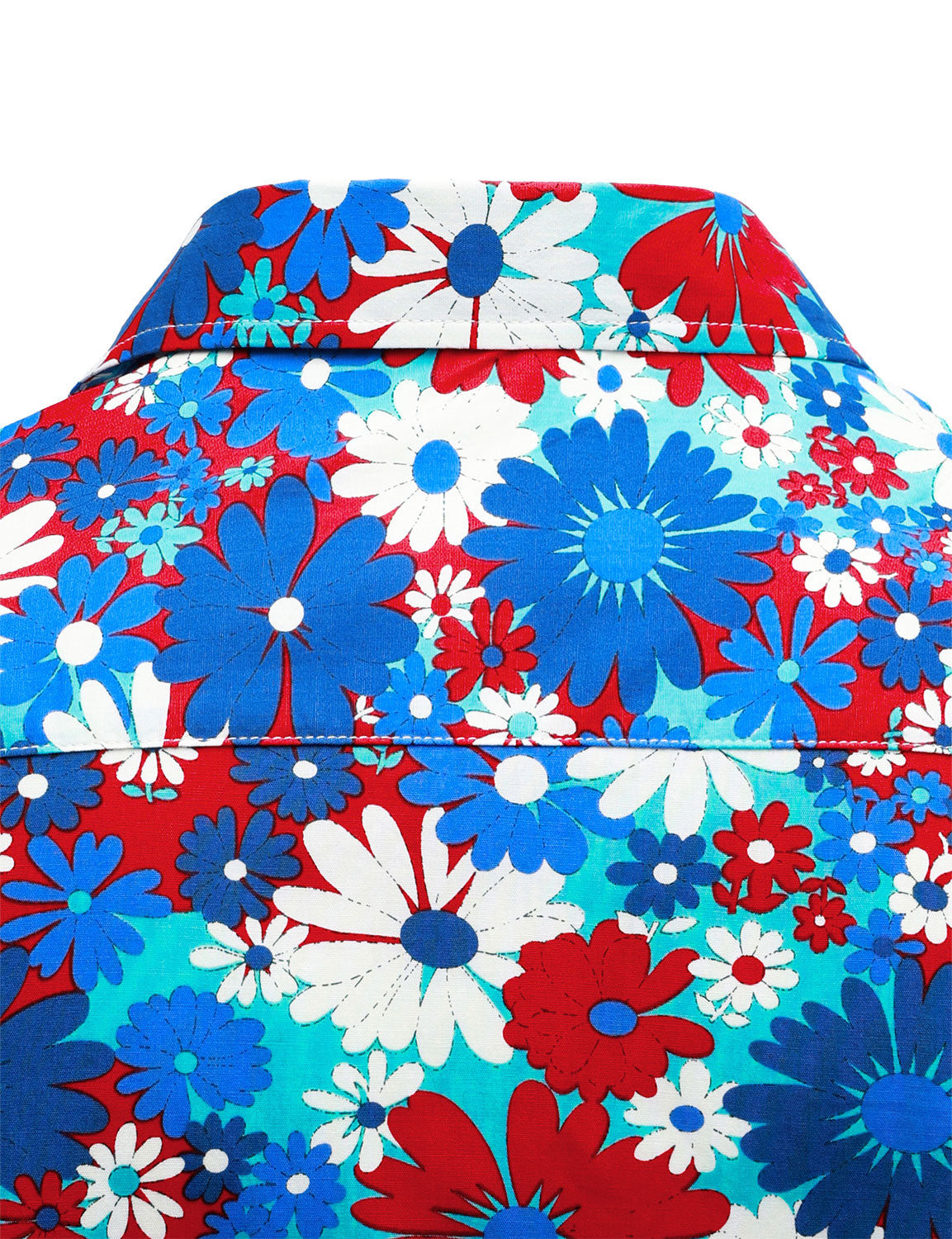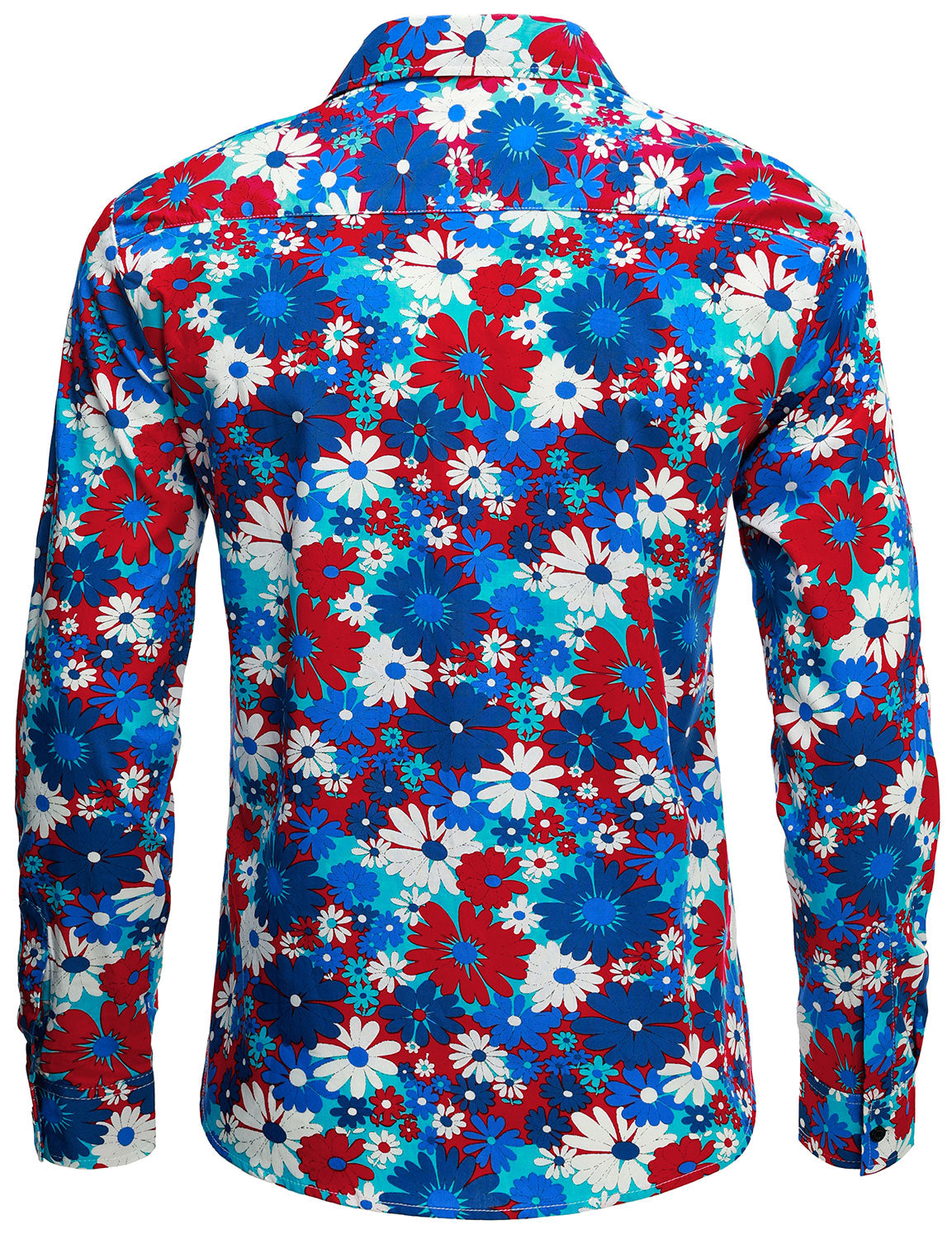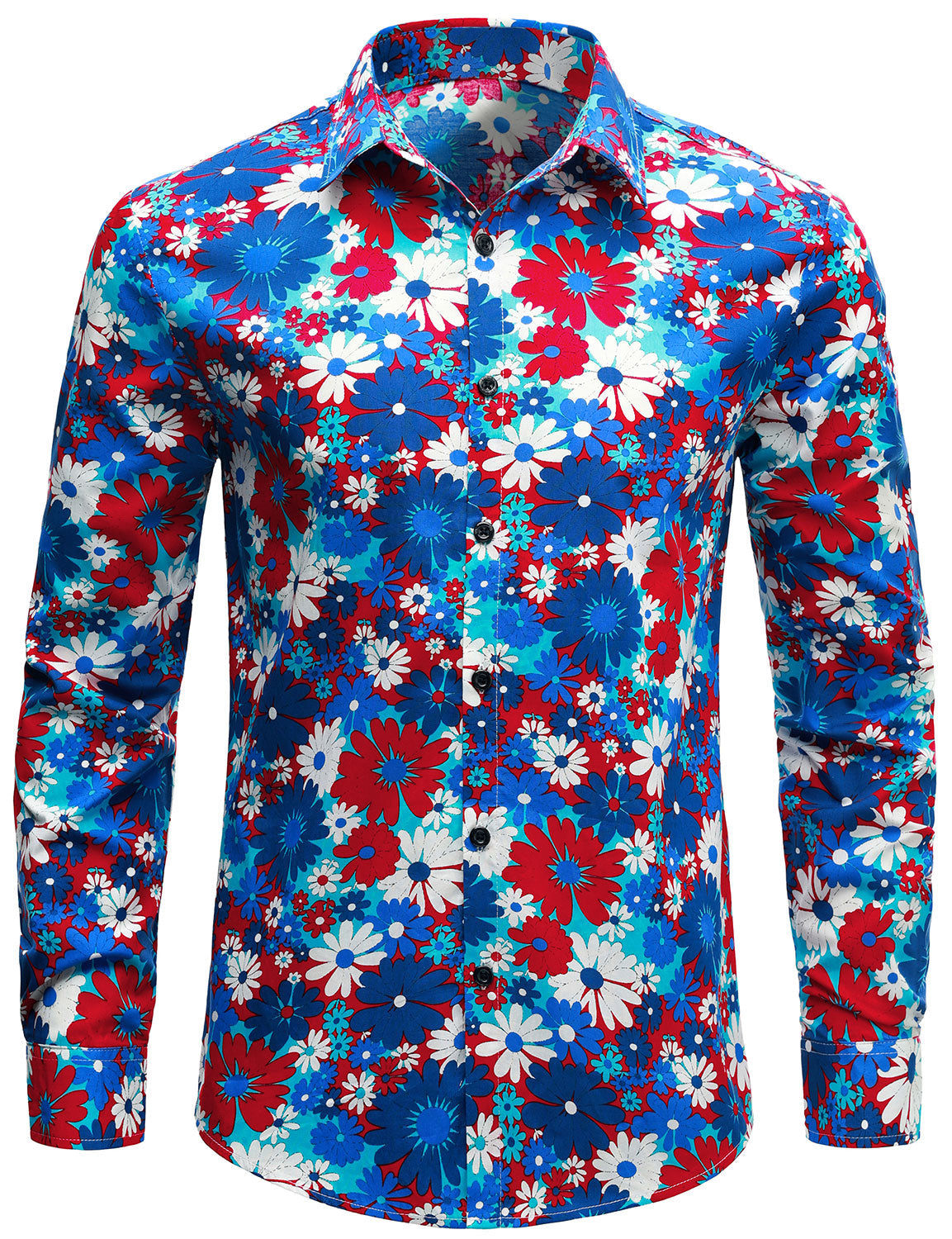 Chemise boutonnée à manches longues en coton bleu à motif floral pour homme