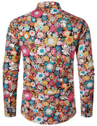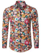 Chemise habillée à manches longues en coton fleuri pour hommes boutonnée des années 70