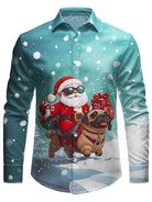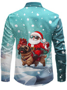 Chemise à manches longues pour homme avec imprimé Père Noël et chien mignon