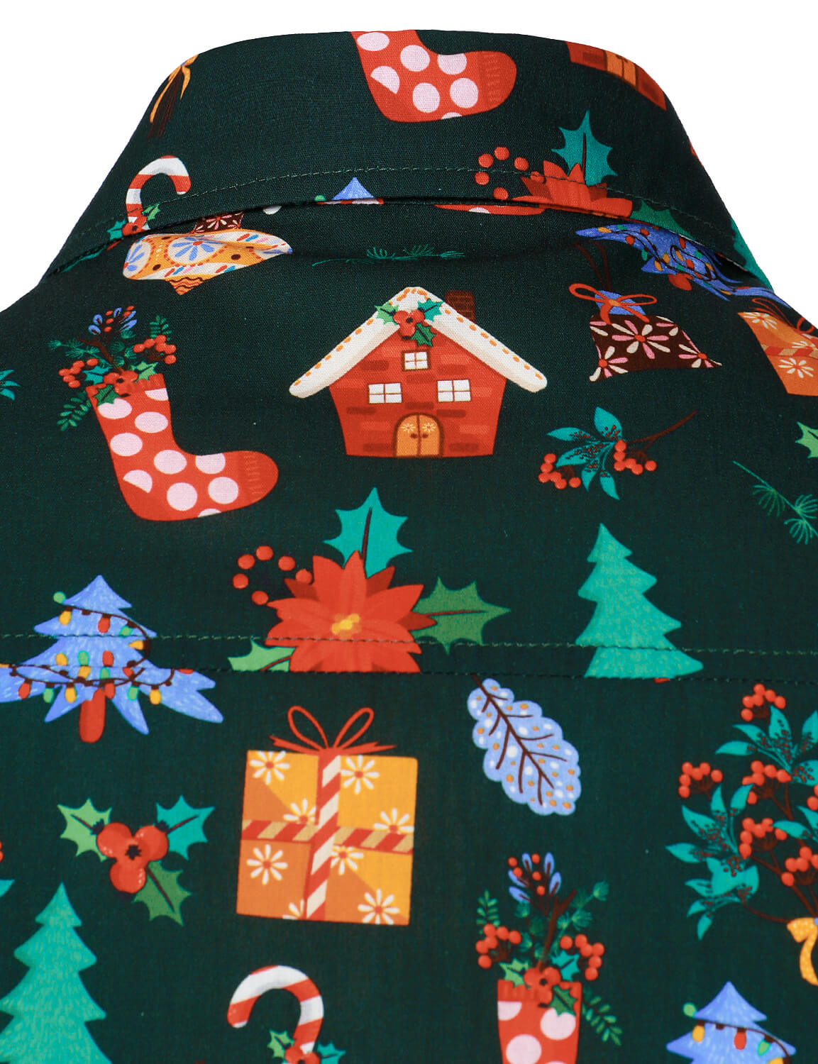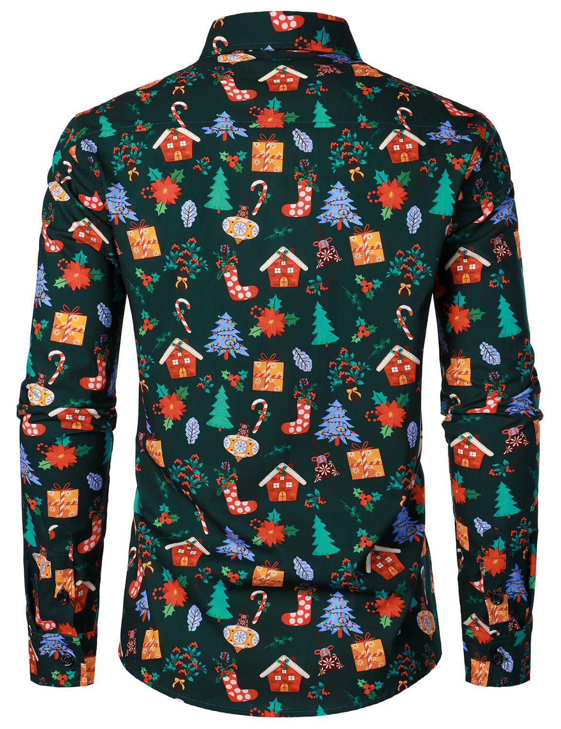 Chemise à manches longues en coton avec imprimé arbre de Noël pour homme