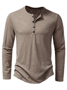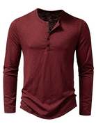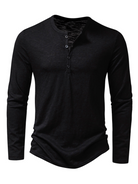 T-shirt décontracté à col Henley pour hommes, couleur unie