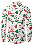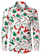 Chemise à manches longues à boutons pour homme avec imprimé ornements de Noël et sapins