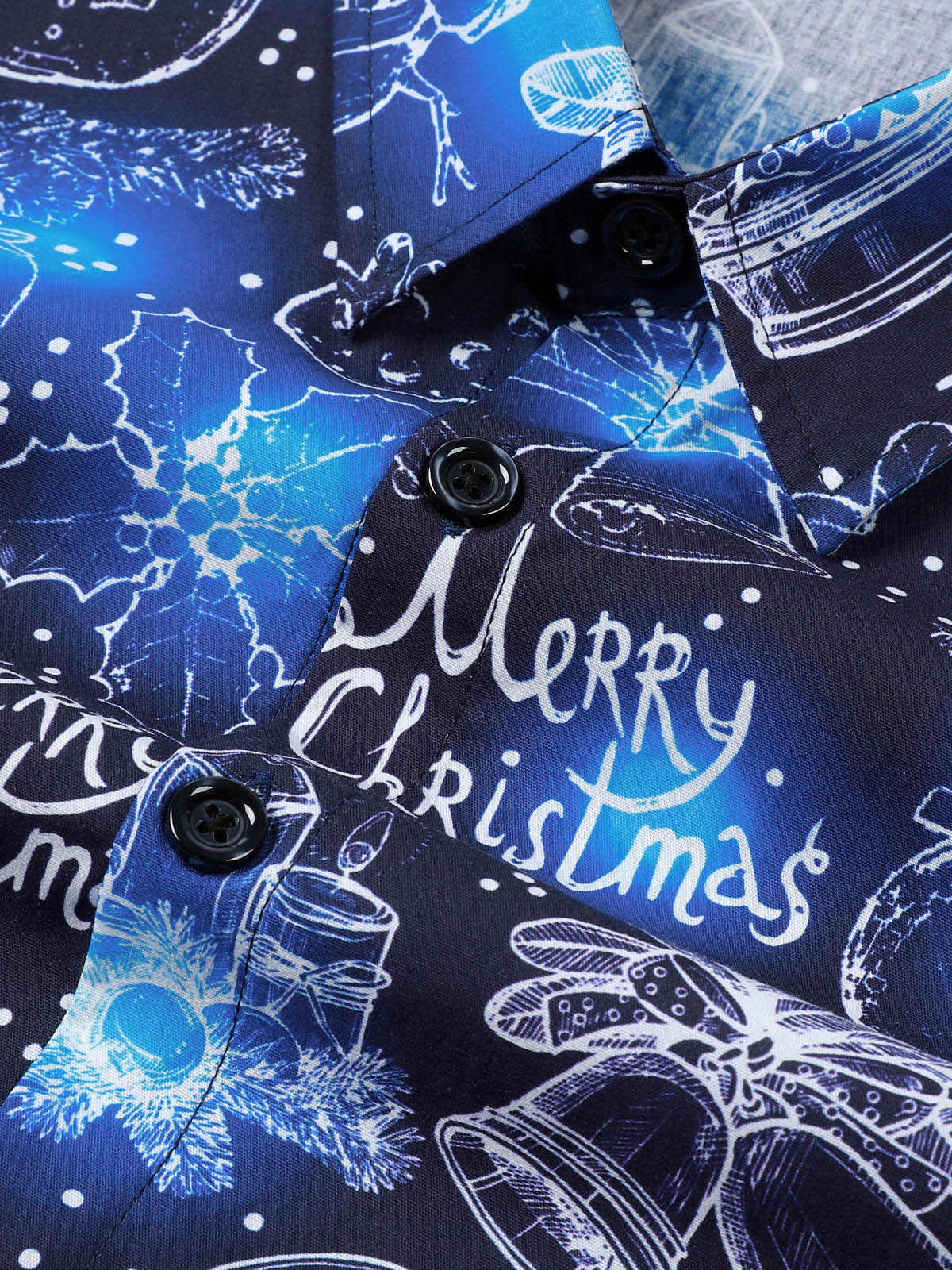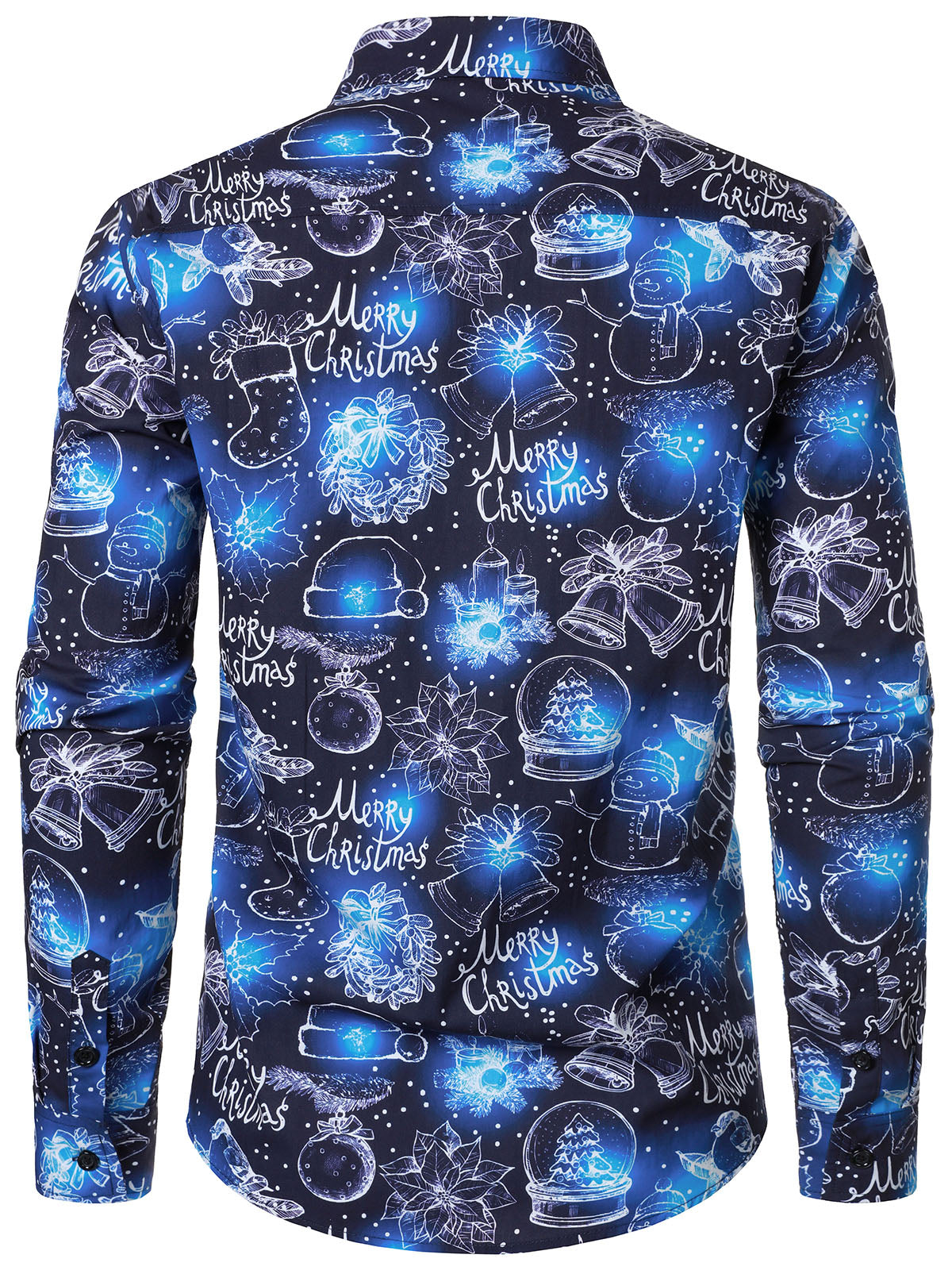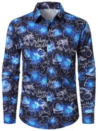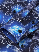 Chemise de Noël bleue en coton à manches longues pour homme