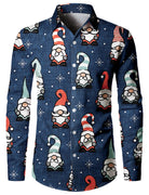 Chemise en coton à manches longues pour homme avec gnome mignon bleu pour Noël