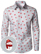 Chemise à manches longues boutonnée décontractée à imprimé bonhomme de neige de Noël pour hommes
