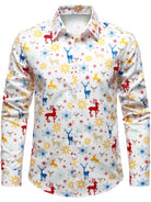 Chemise blanche de Noël pour homme à manches longues motif renne et flocons de neige festifs