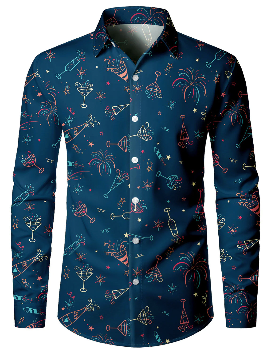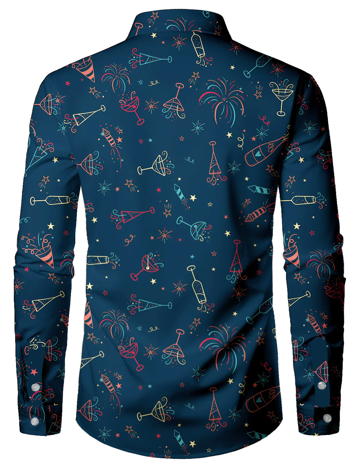 Chemise à manches longues pour homme avec imprimé feux d'artifice du Nouvel An