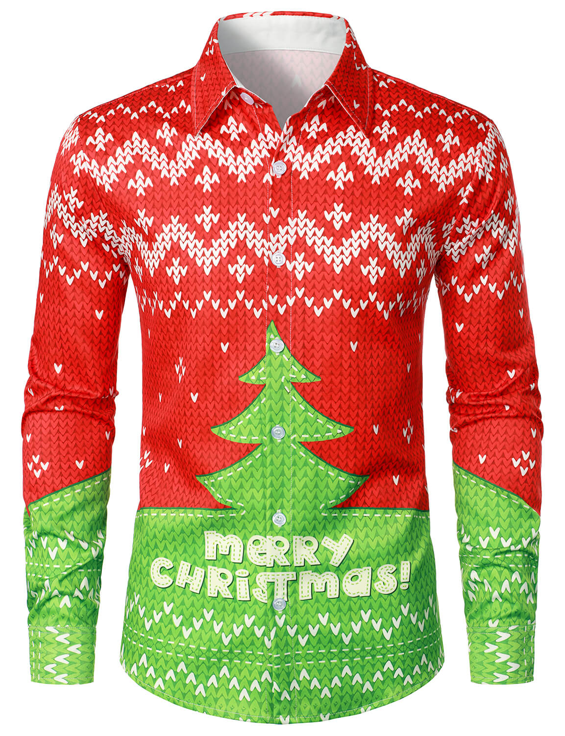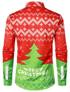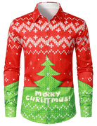 Chemise à manches longues pour homme, motif joyeux noël, arbre de noël, Costume de noël, boutons