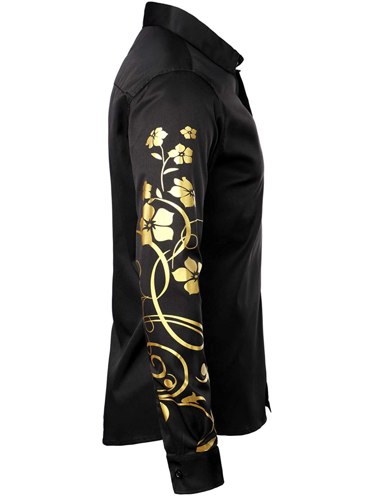 Chemise imprimée de motifs floraux brillant métallisé homme