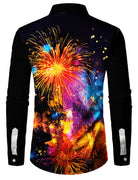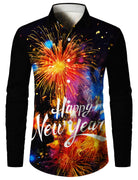 Chemise à manches longues pour hommes, drôle avec des feux d'artifice et à boutons pour le Nouvel An