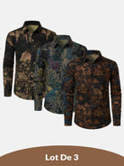 Lot de 3 | Chemises rétro à manches longues à imprimé floral pour homme