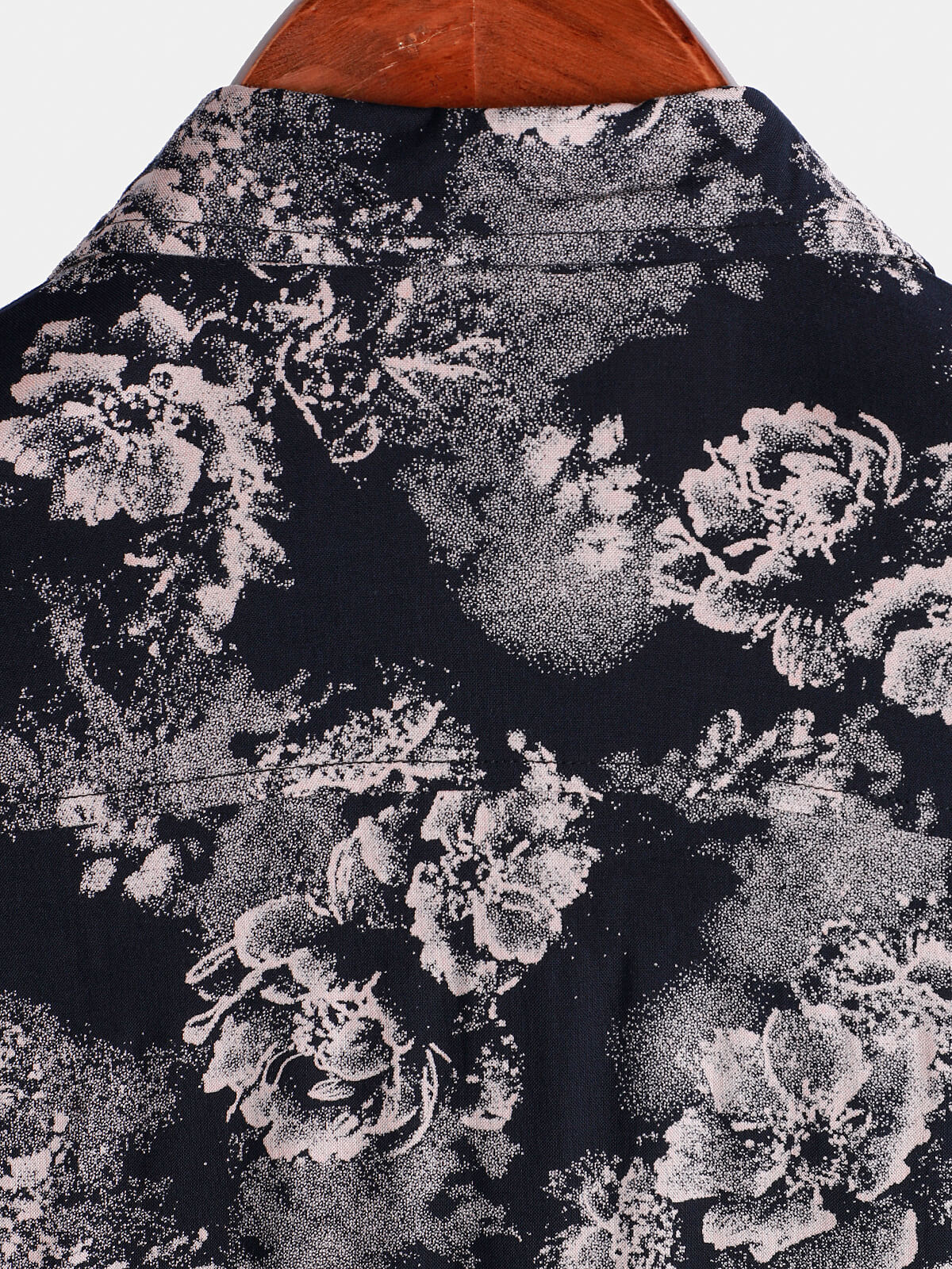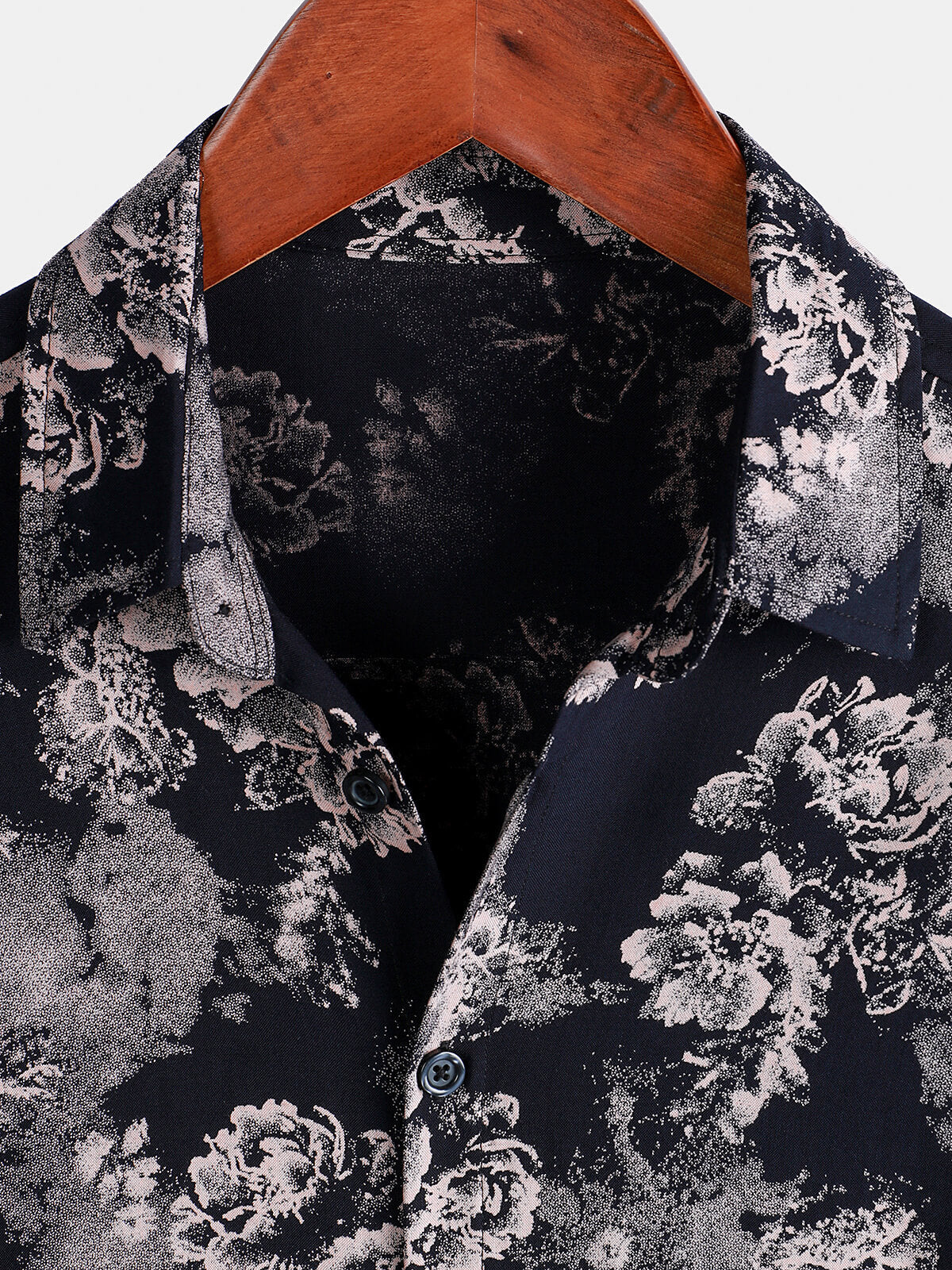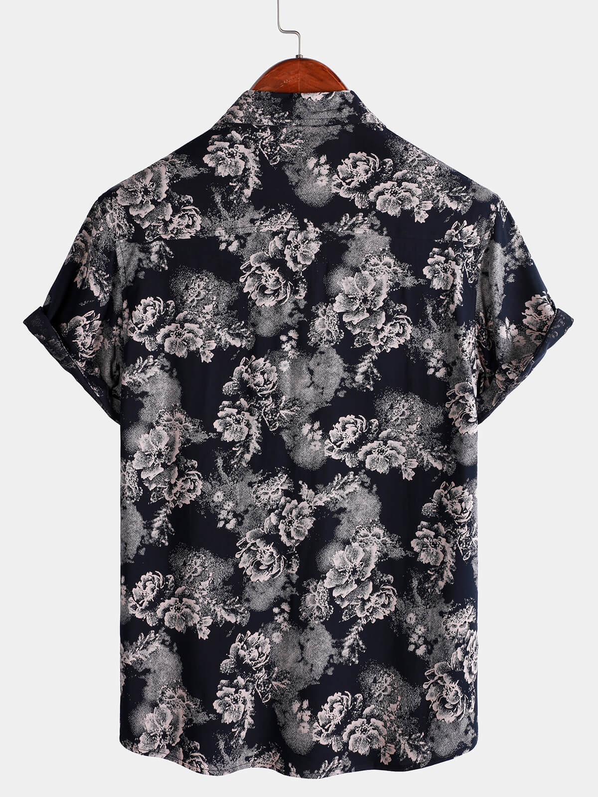 Chemise d'été à manches courtes et motif floral en rayonne pour homme