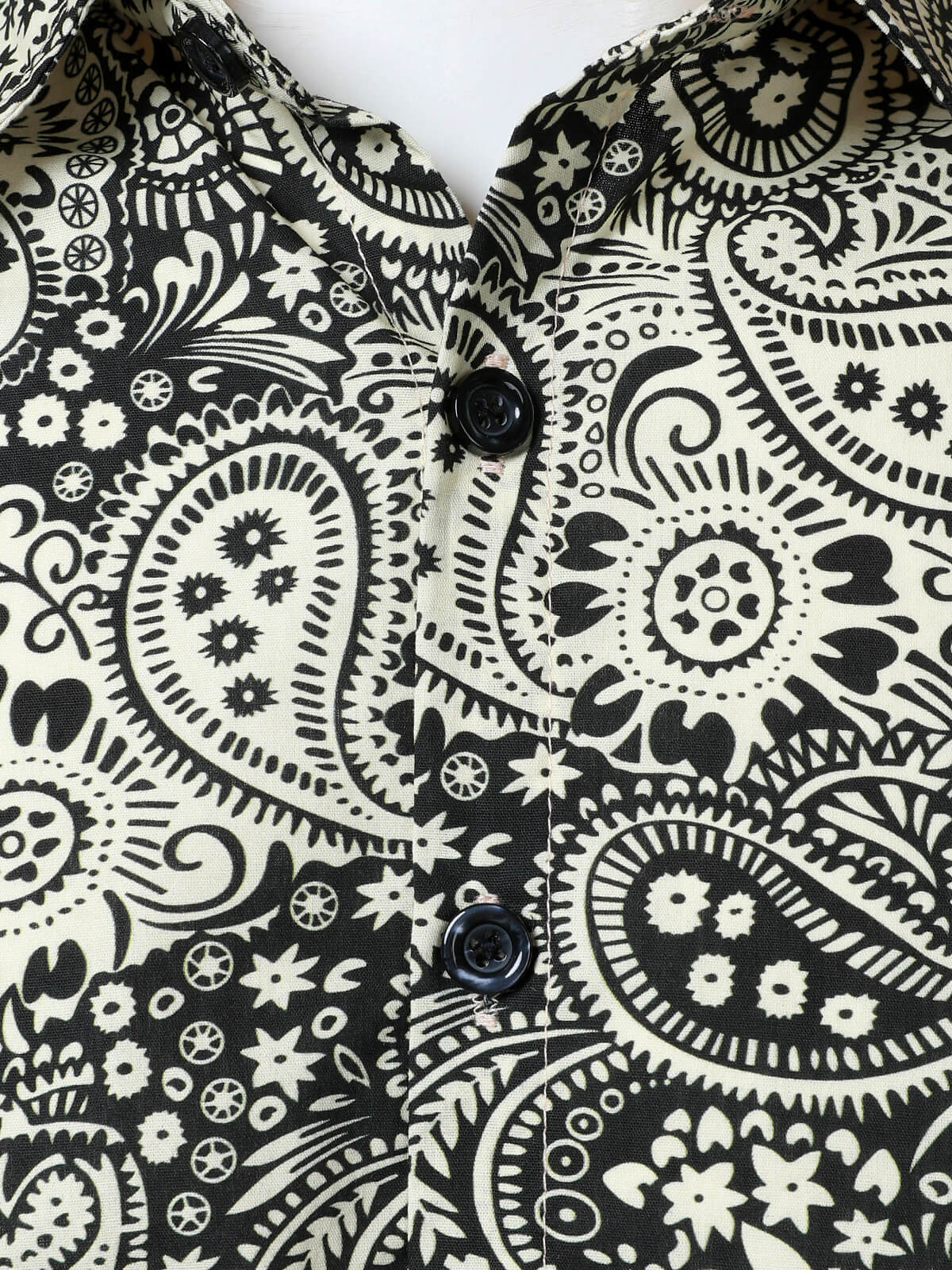 Chemise à manches longues en coton à imprimé cachemire pour homme