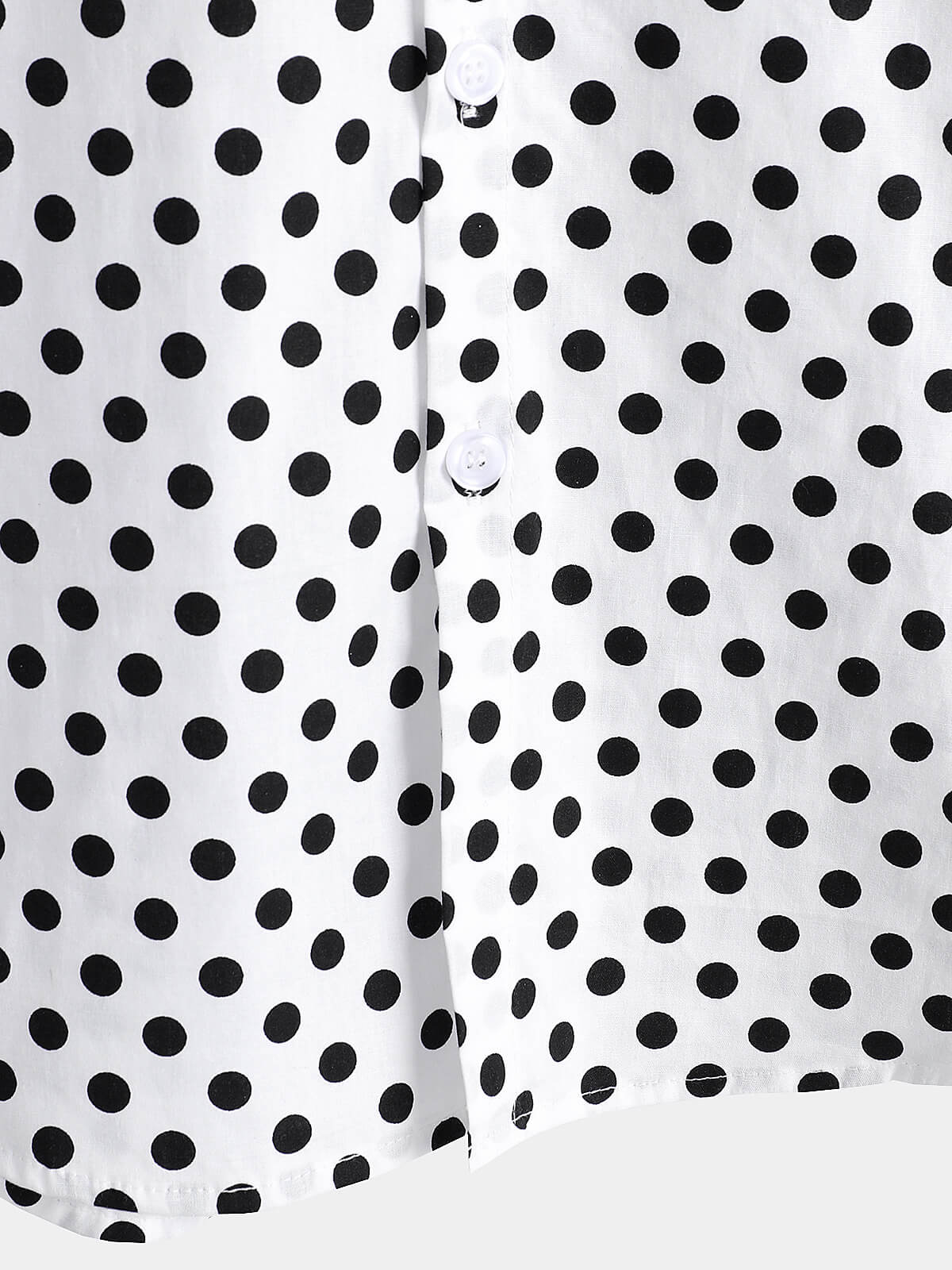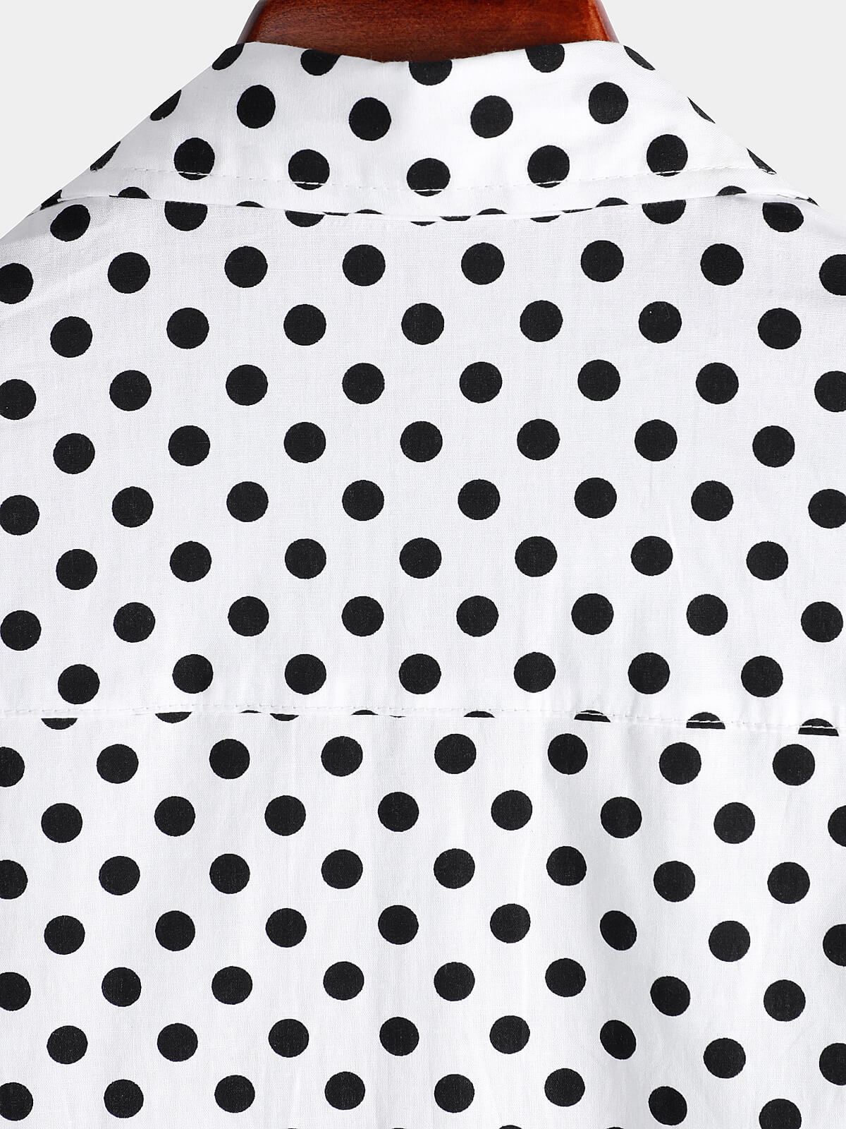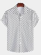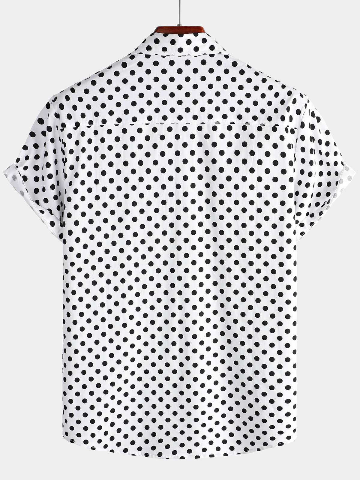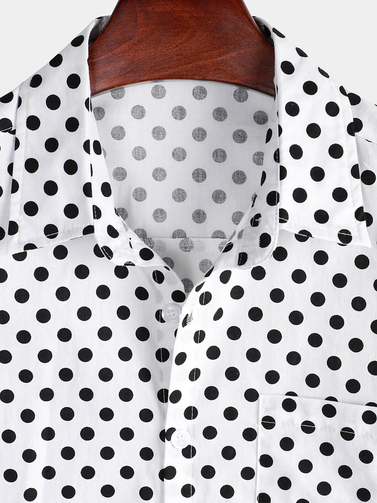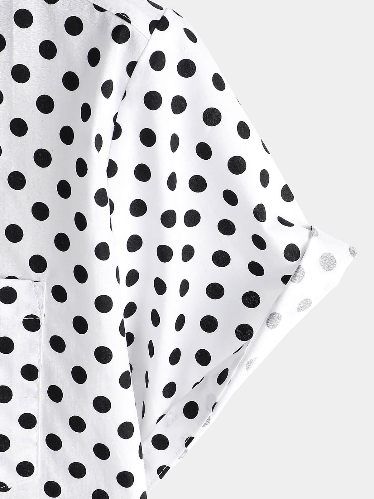 Chemise à manches courtes en coton pour hommes, décontractée, à pois, avec poche blanche, été