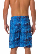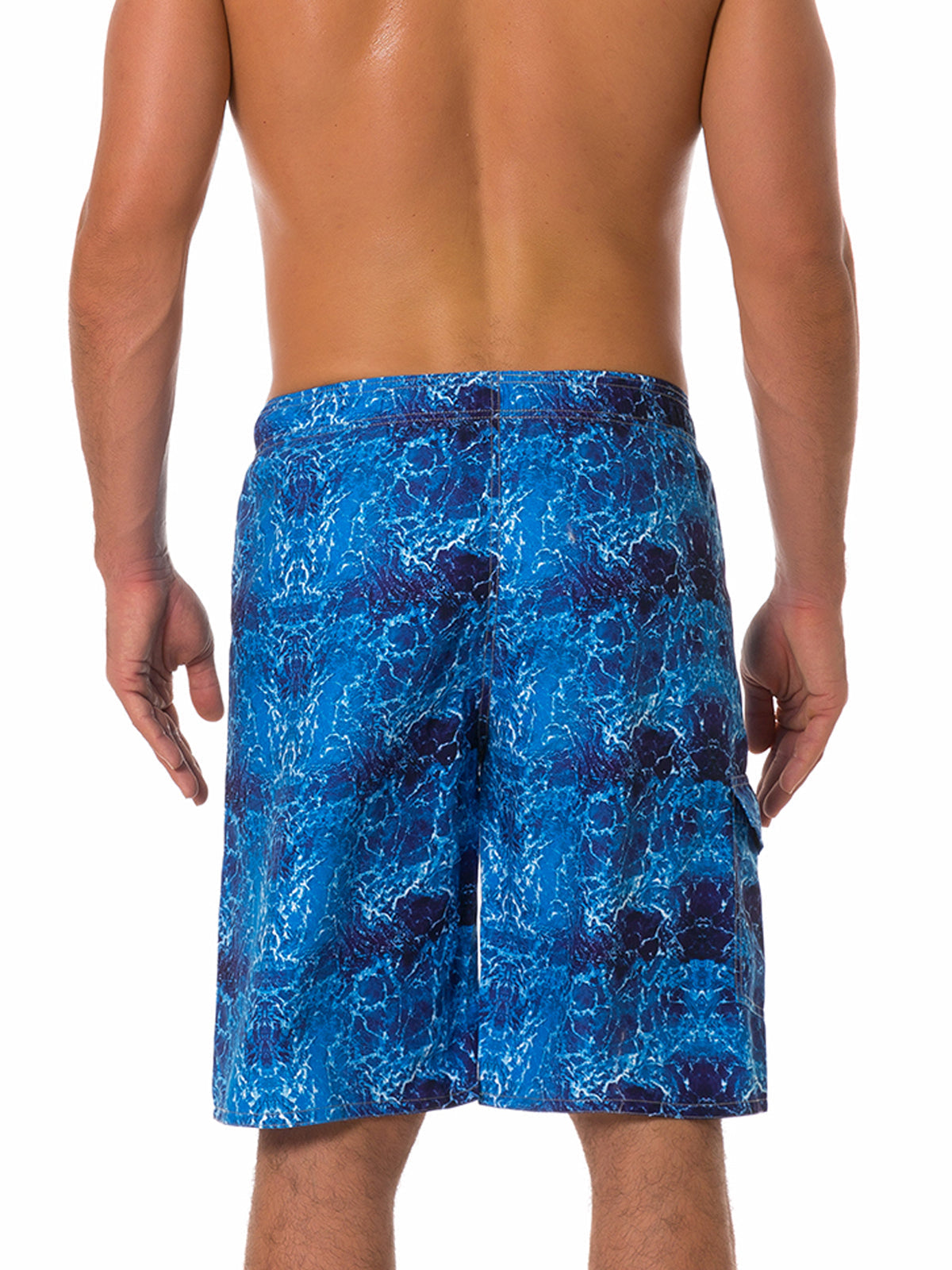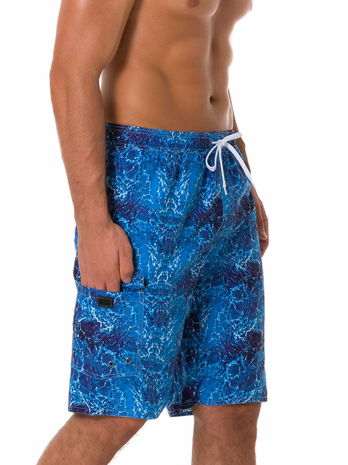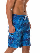 Short de bain pour homme été imprimé vague décontracté plage vacances bleu