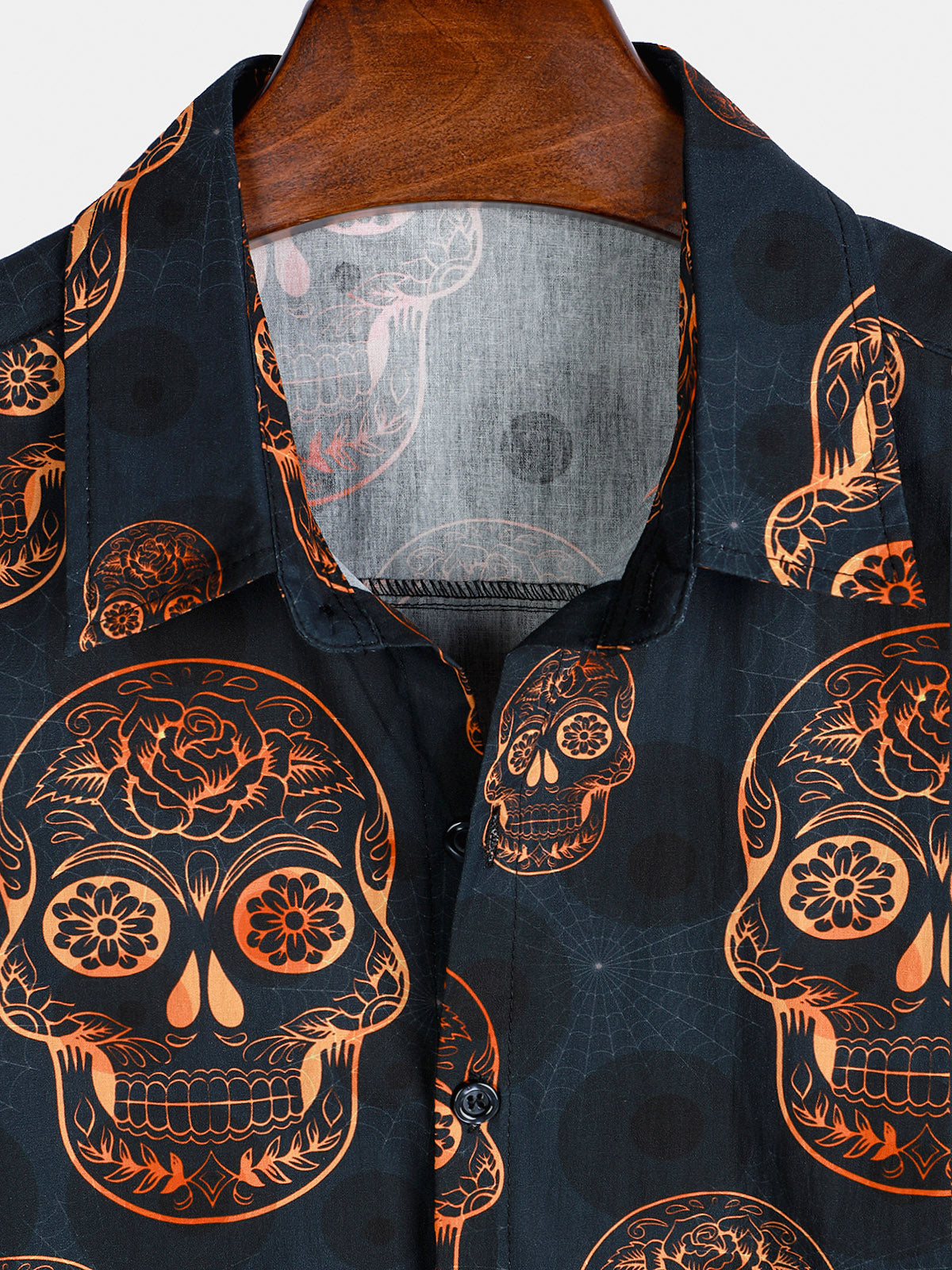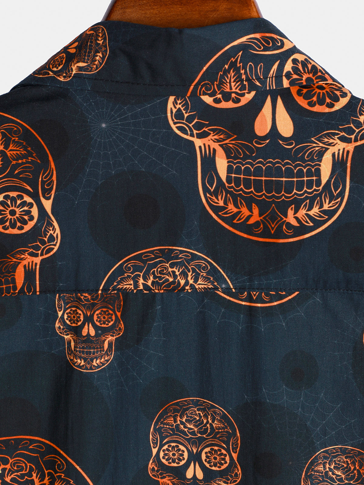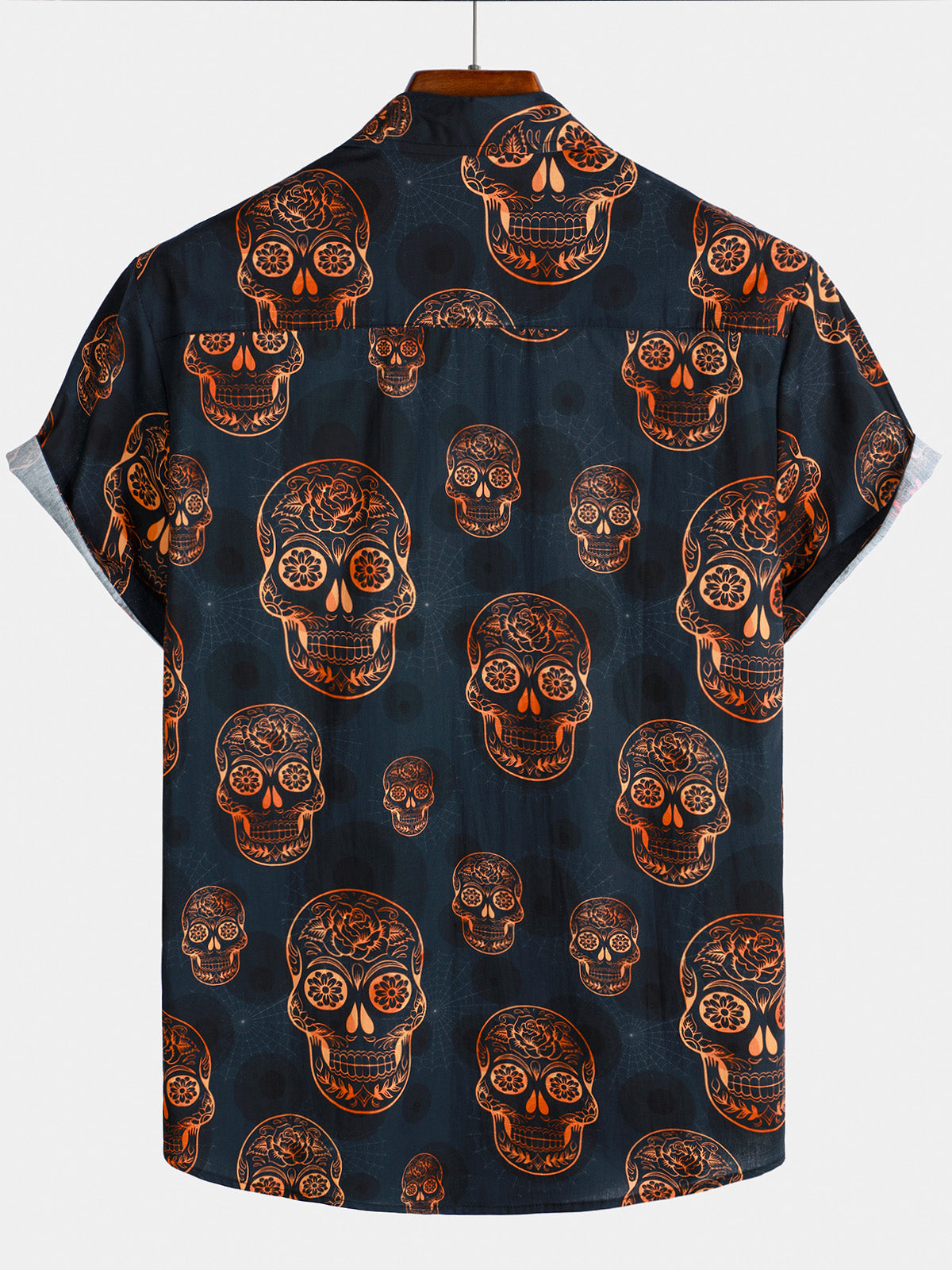 Chemise hawaïenne à manches courtes pour homme, motif tête de mort