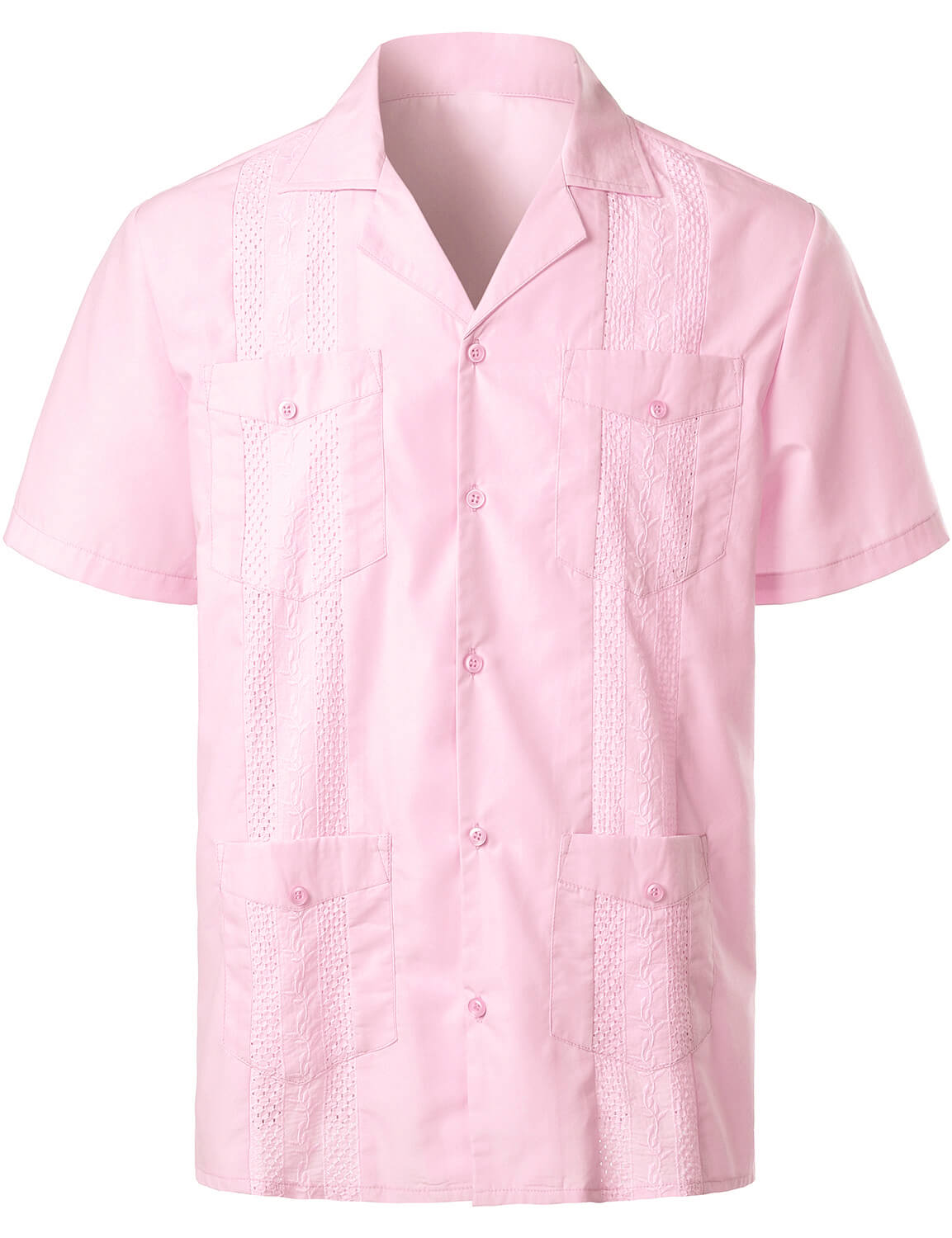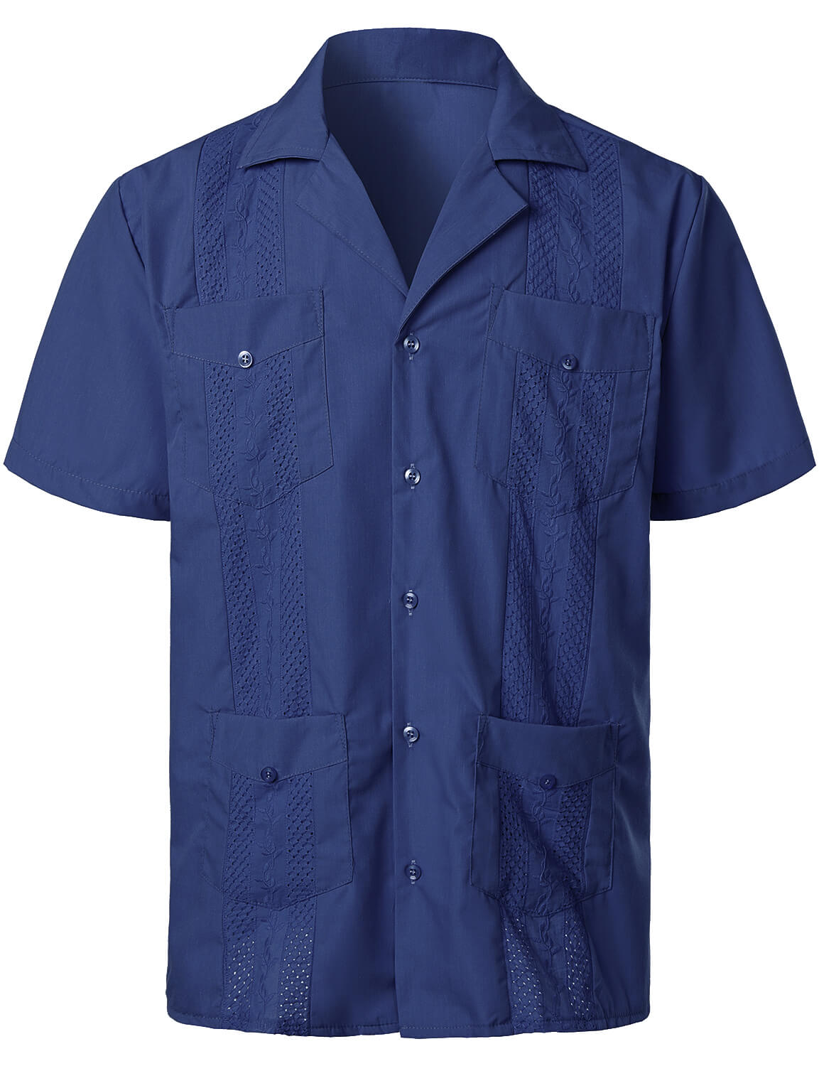 Chemise de plage boutonnée à manches courtes Guayabera cubaine brodée d'été pour hommes