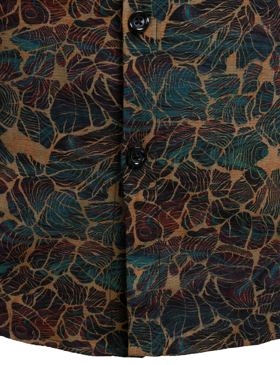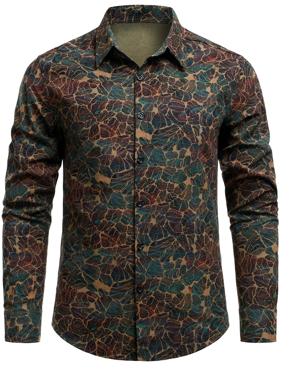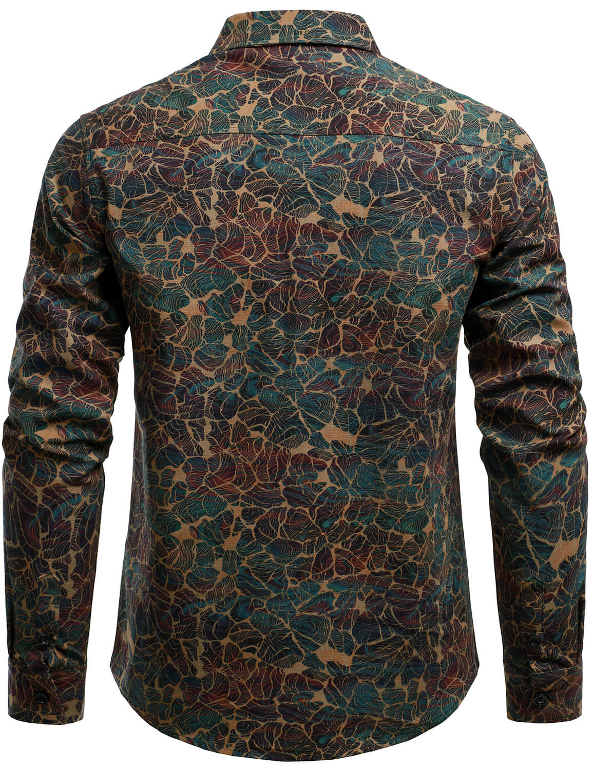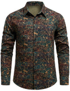 Chemise boutonnée décontractée à manches longues et imprimé rétro pour hommes
