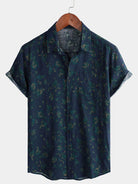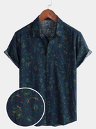 Chemise boutonnée à manches courtes et à poches décontractées pour hommes, motif floral bleu, vacances