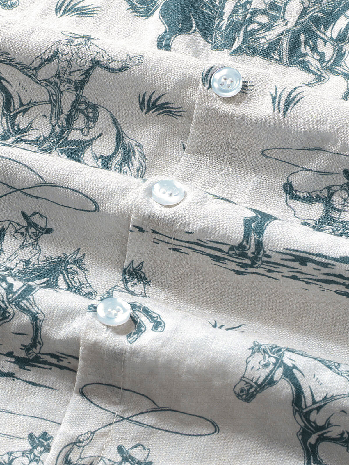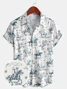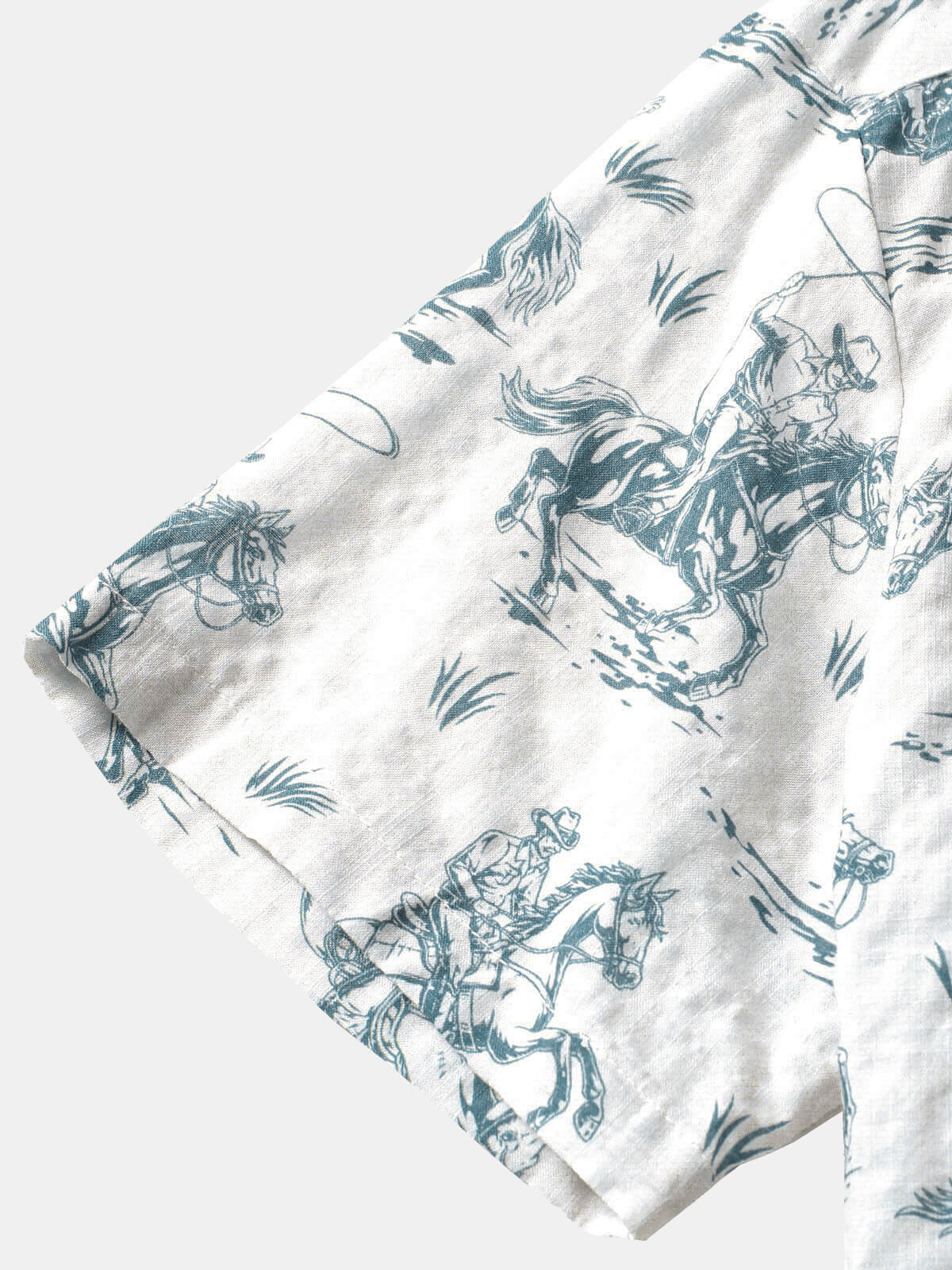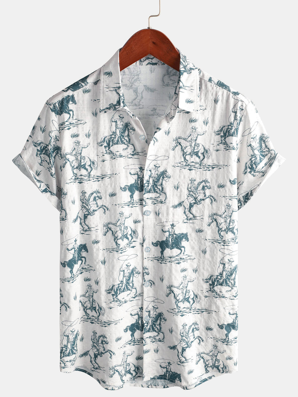 Chemise à manches courtes pour hommes, imprimé cheval, Cowboy, boutonnée, vacances