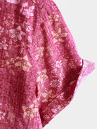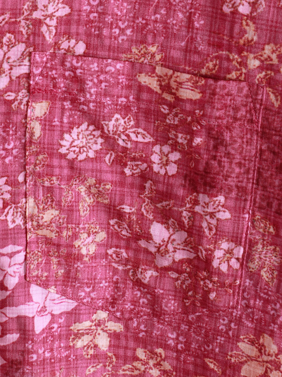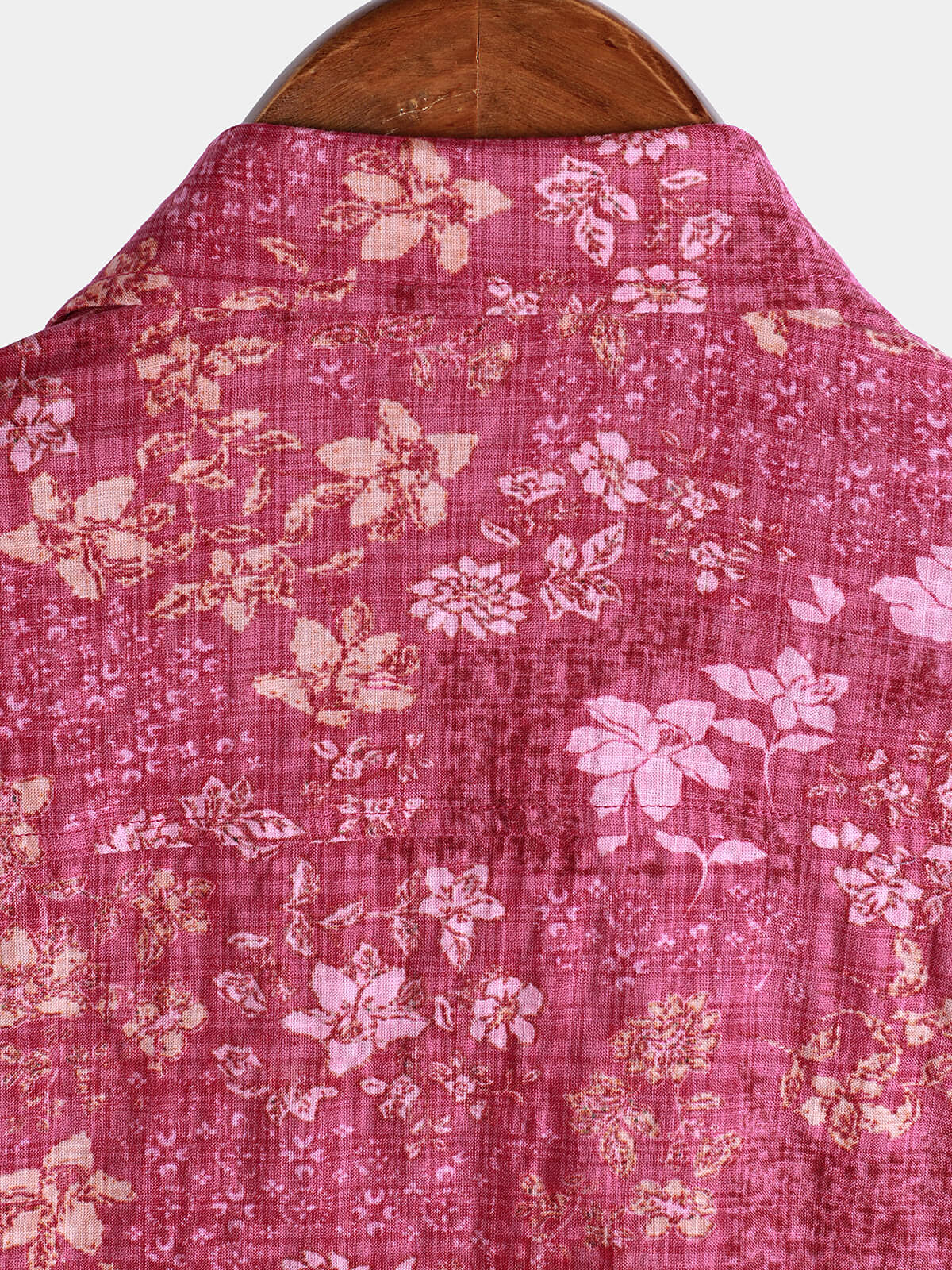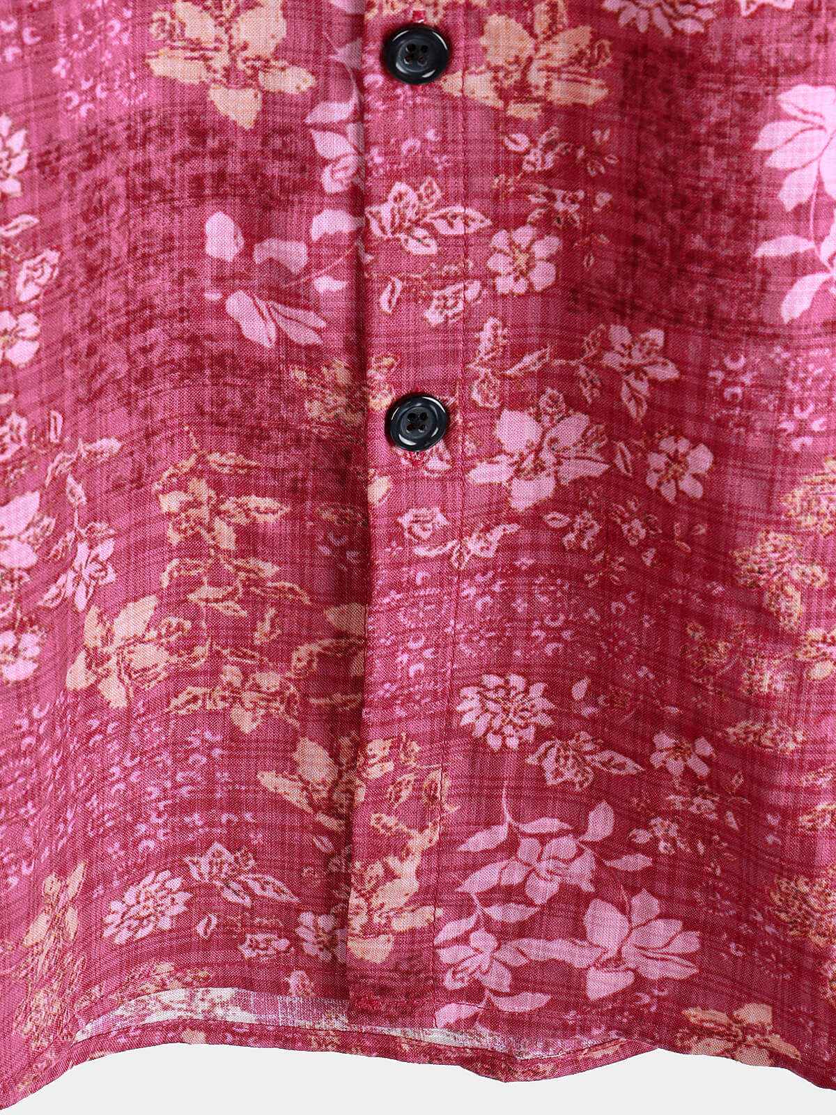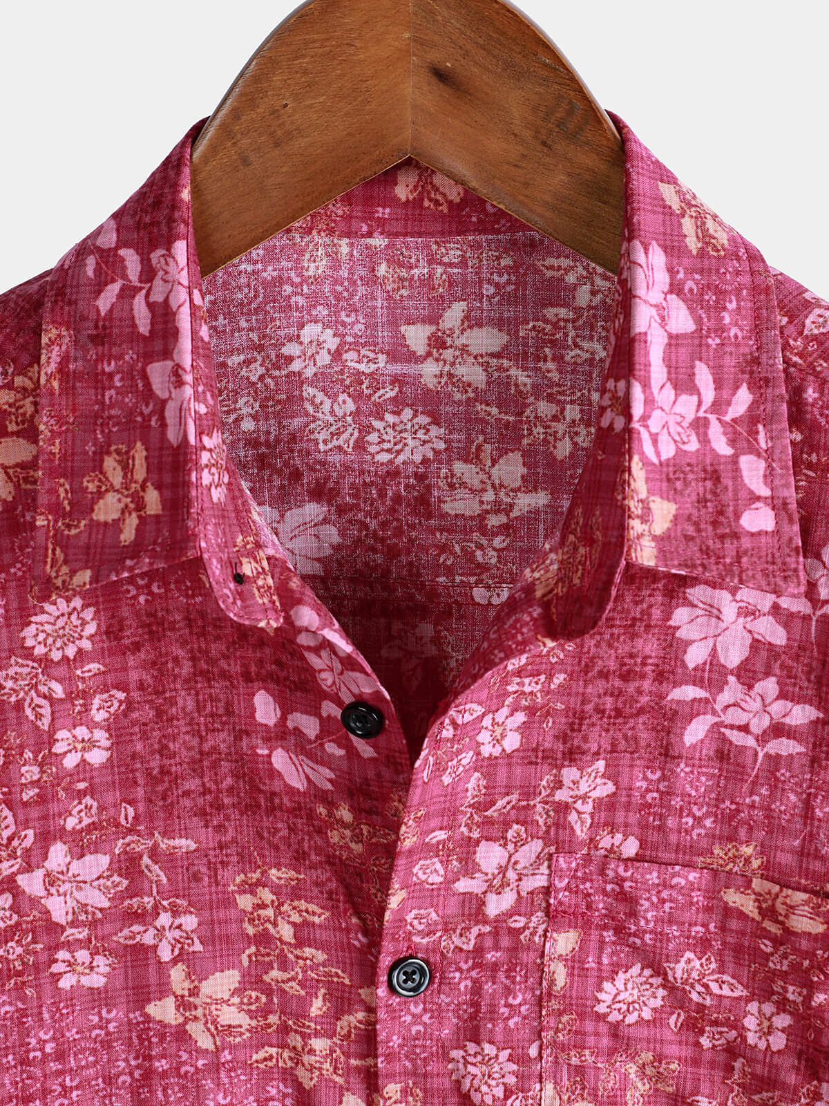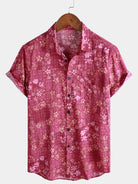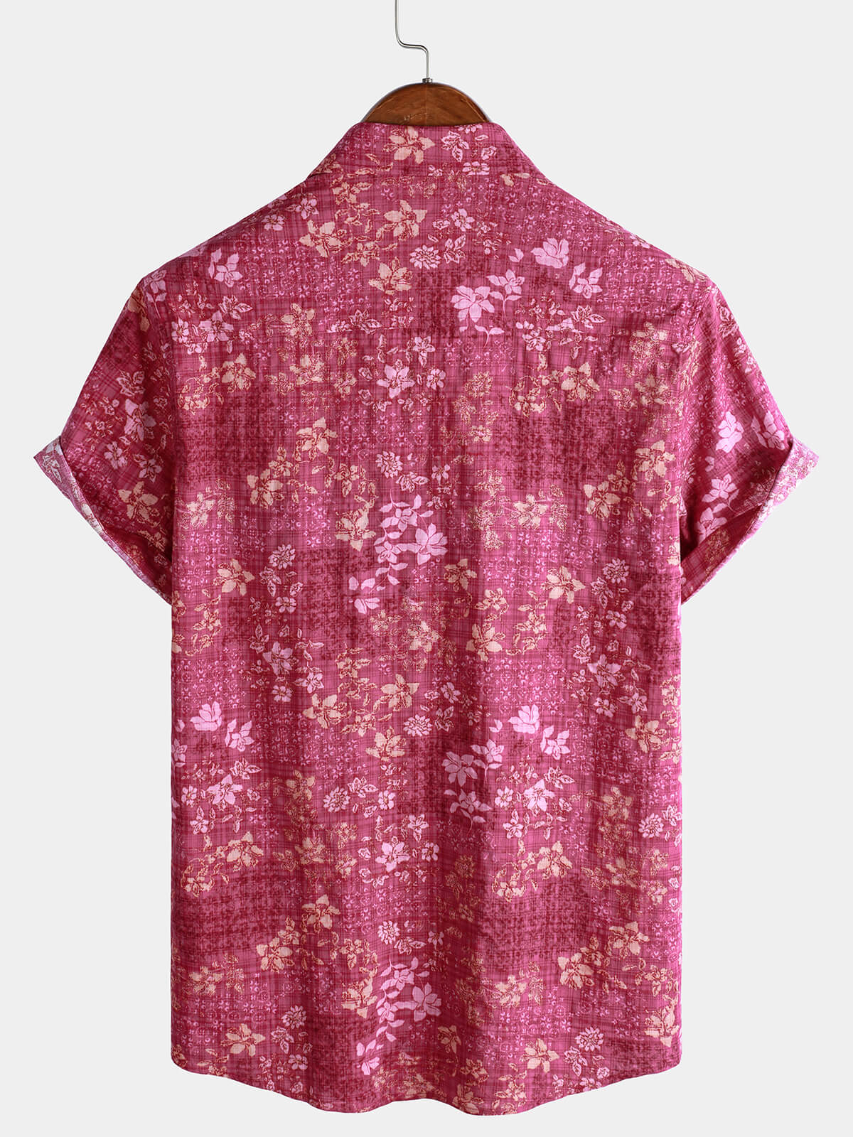 Chemise rétro à manches courtes et poches pour homme, motif floral rose, style décontracté, pour les fêtes