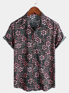 Chemise hawaïenne à manches courtes et poches à fleurs roses pour homme
