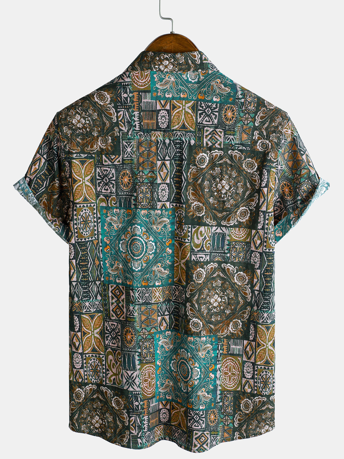 Chemise de vacances respirante à manches courtes pour homme, style rétro