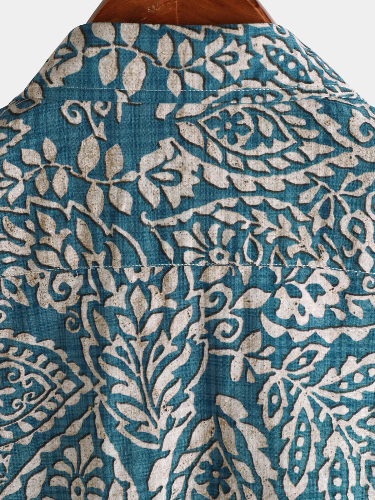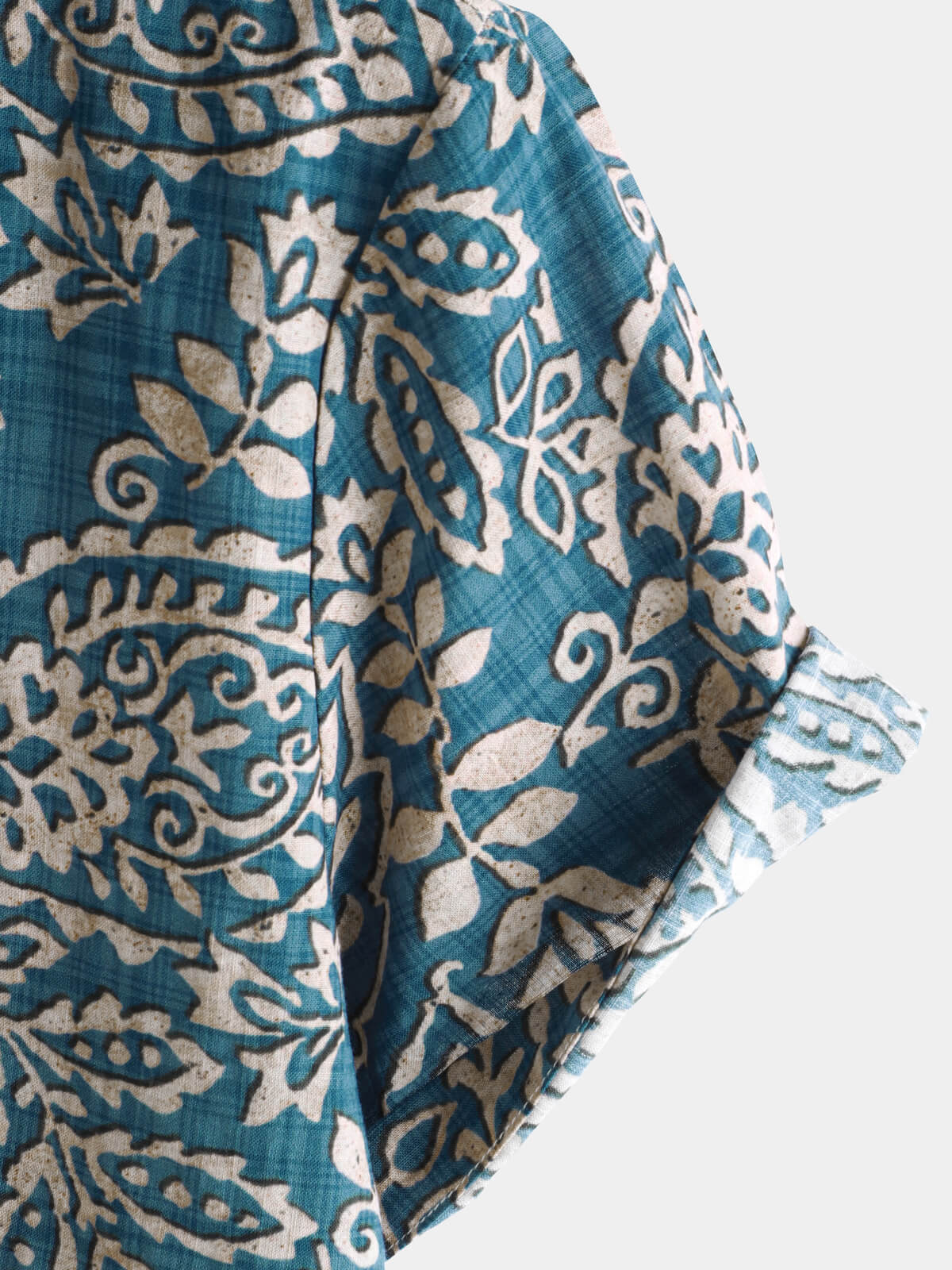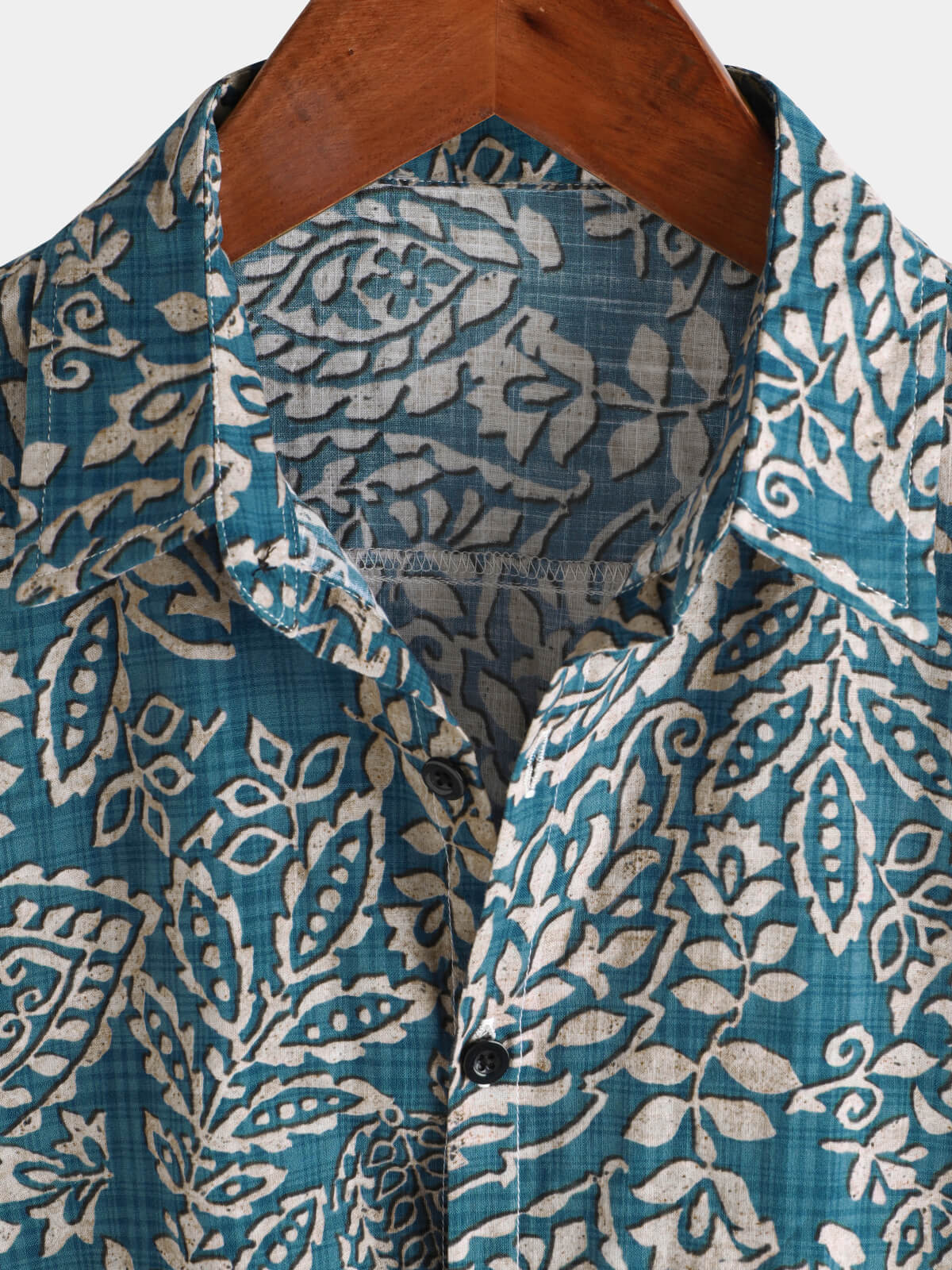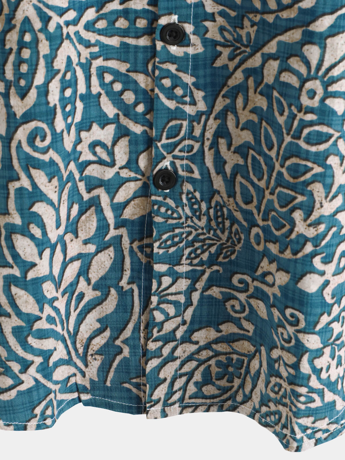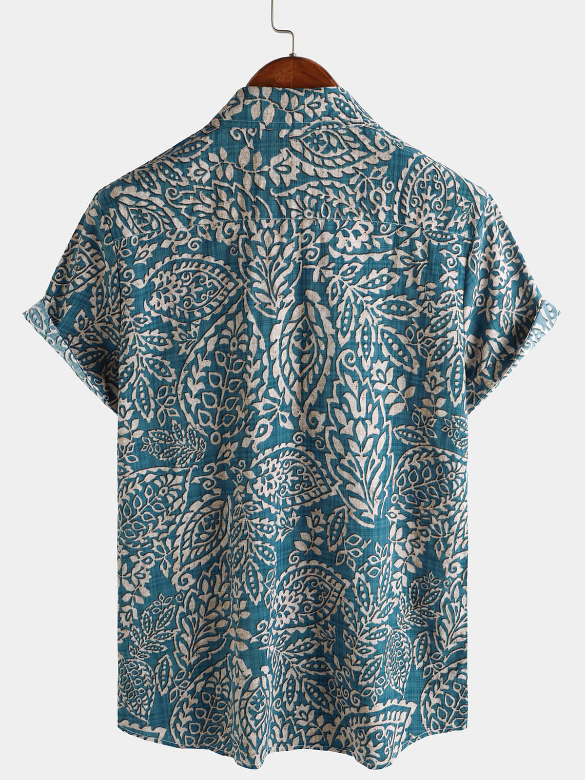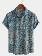 Chemise boutonnée décontractée à manches courtes et imprimé rétro pour hommes