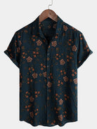 Chemise en coton à manches courtes boutonnée bleu marine à fleurs d'été pour hommes