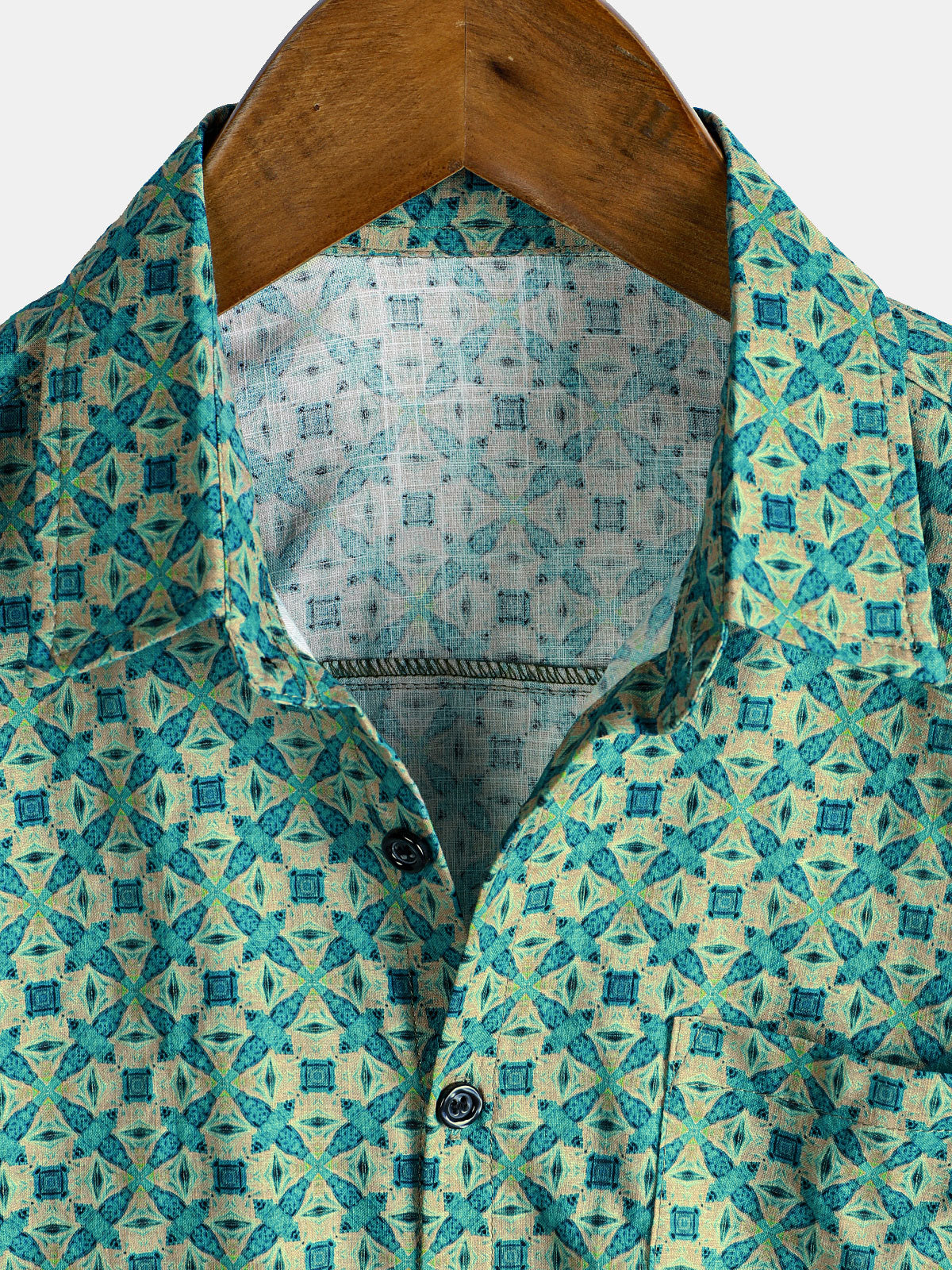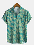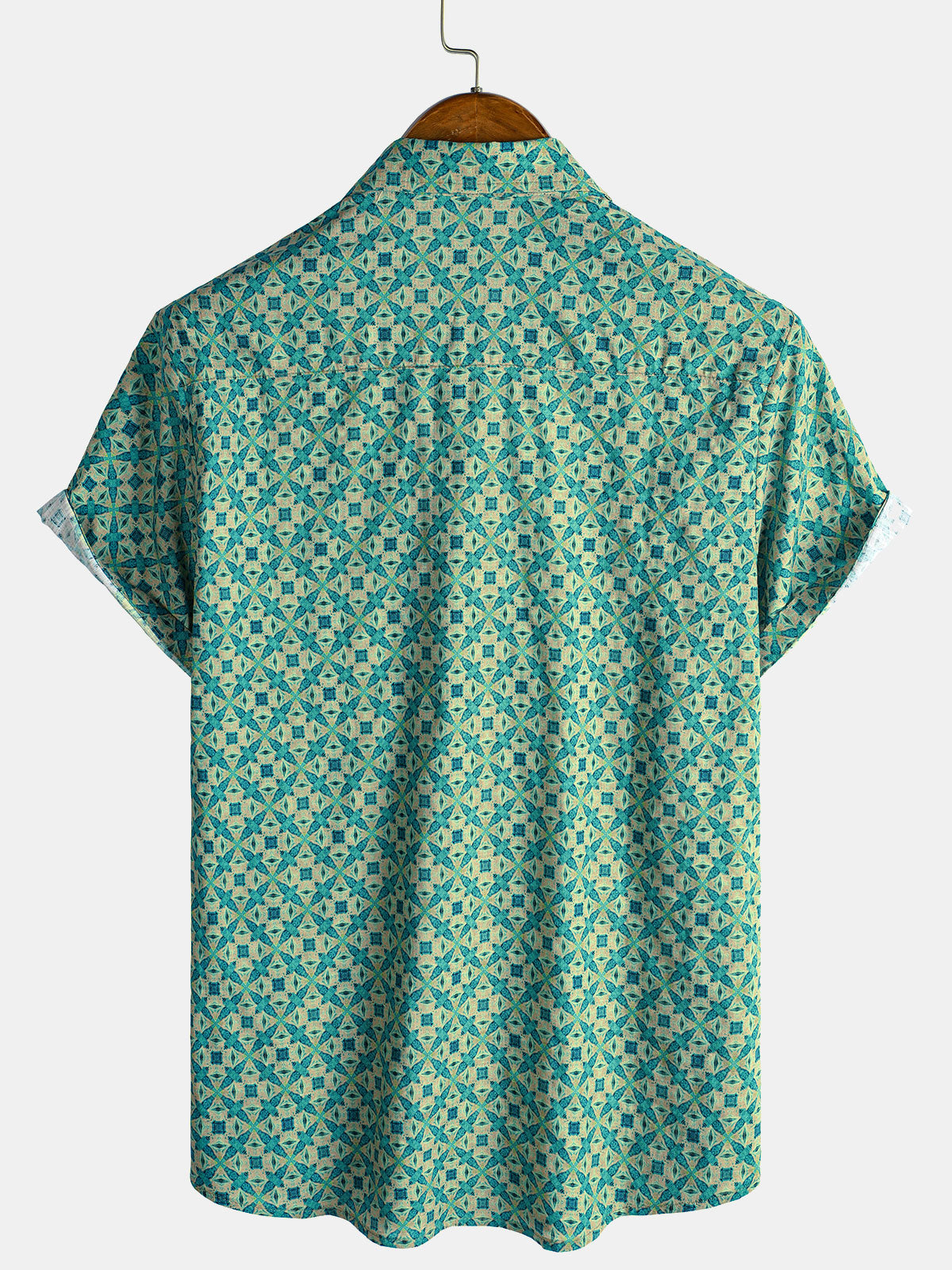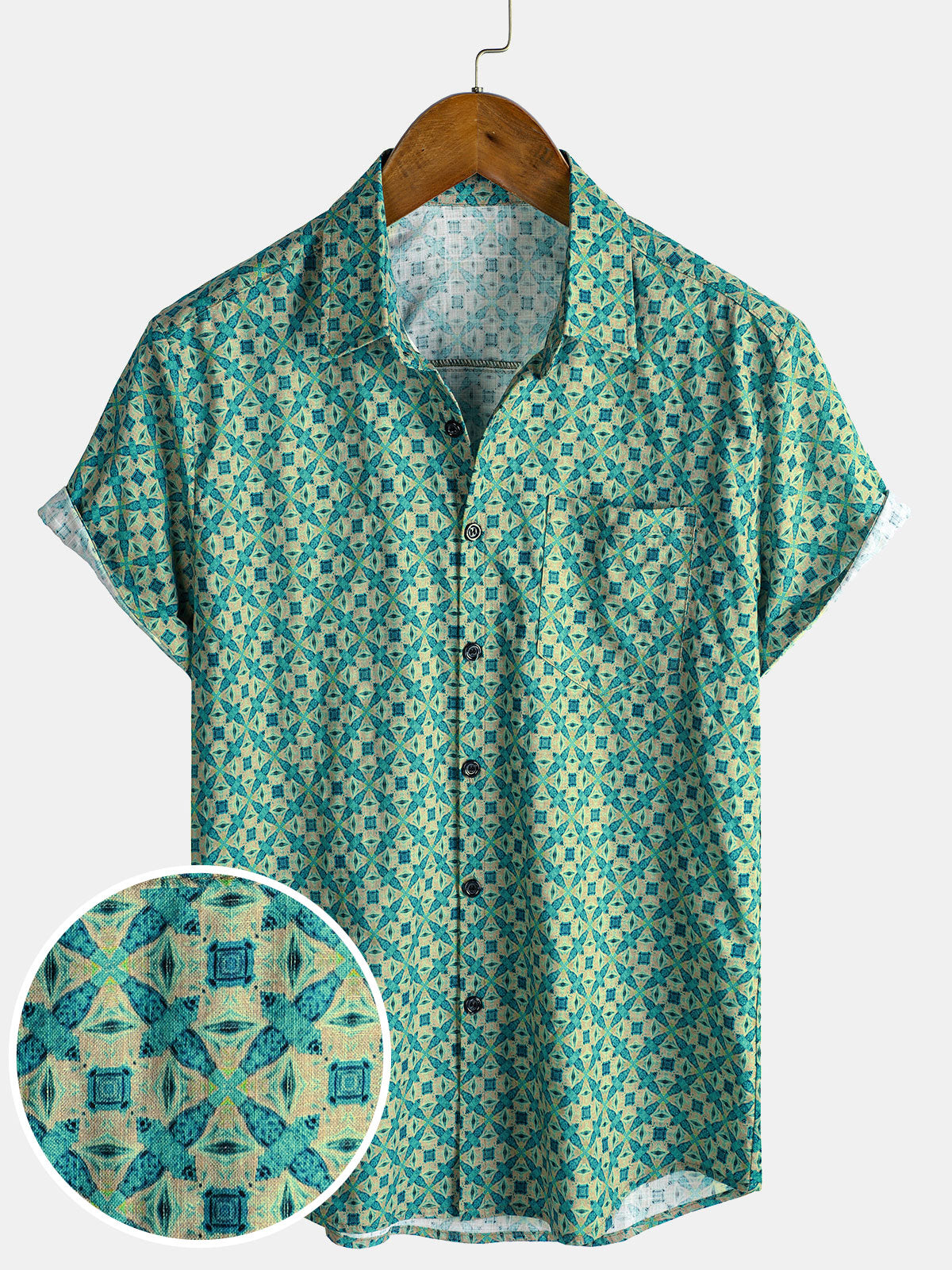 Chemise décontractée à manches courtes en coton pour homme, style rétro, pour l'été et la plage