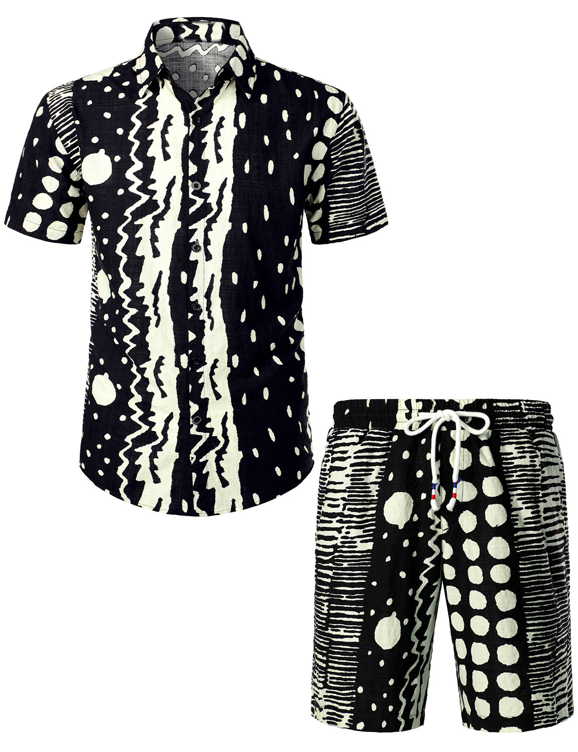 Ensemble chemise et short assortis vintage vert style bohème décontracté des années 70 pour hommes