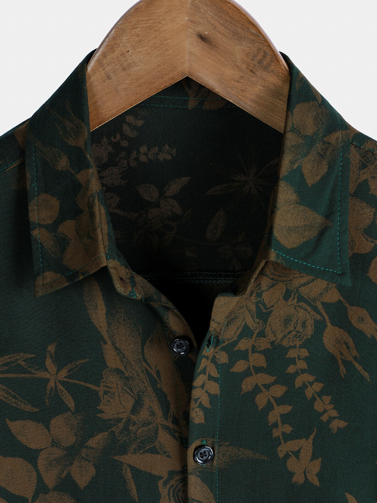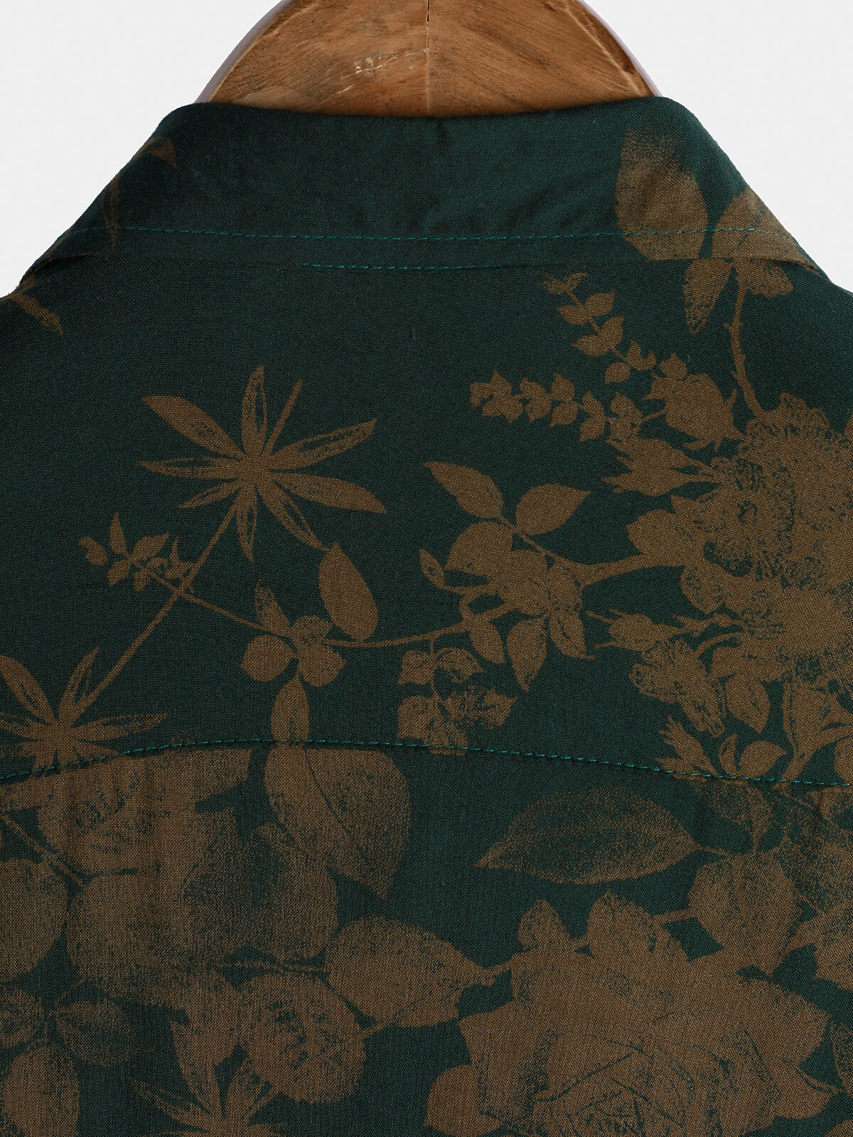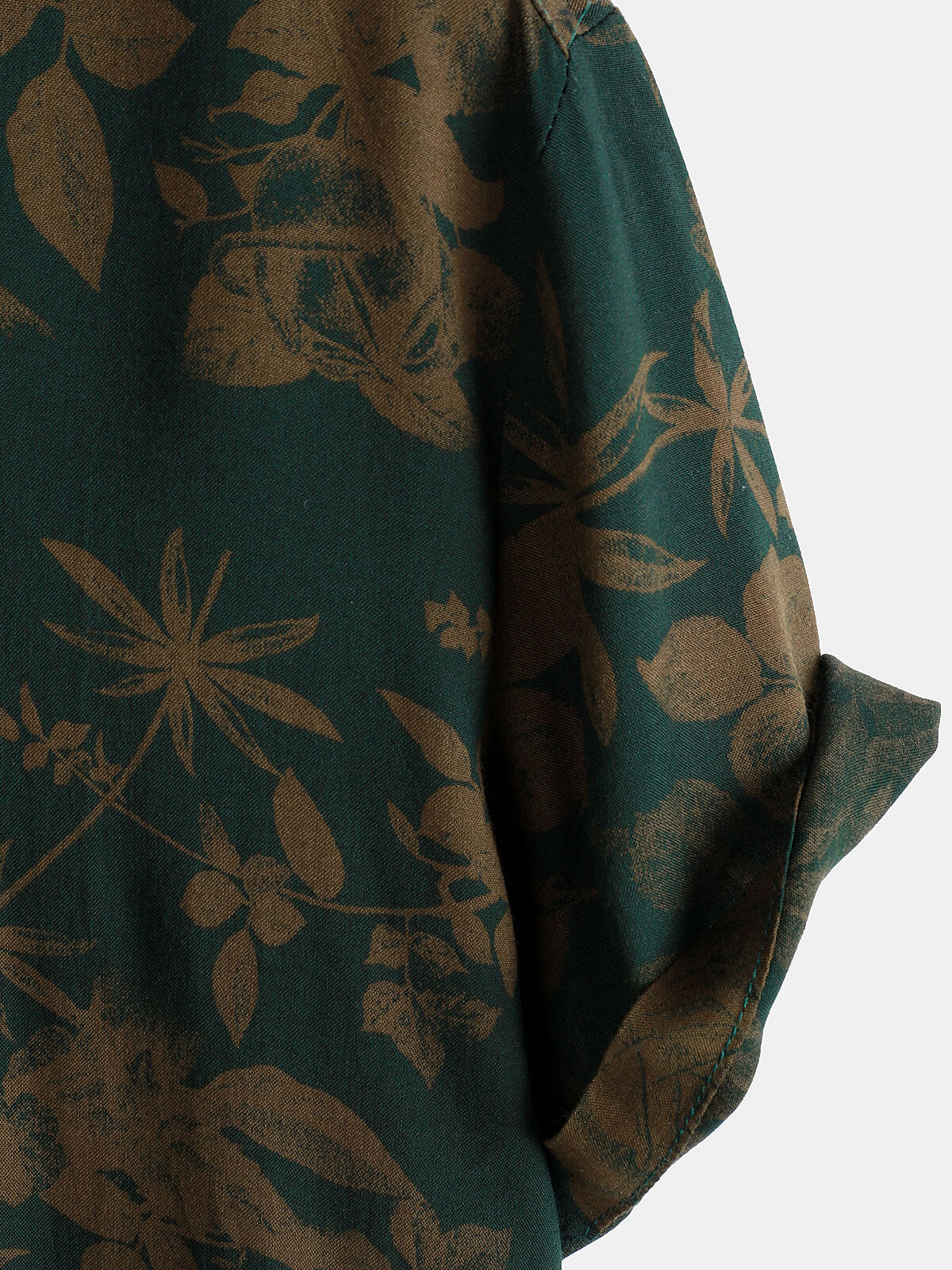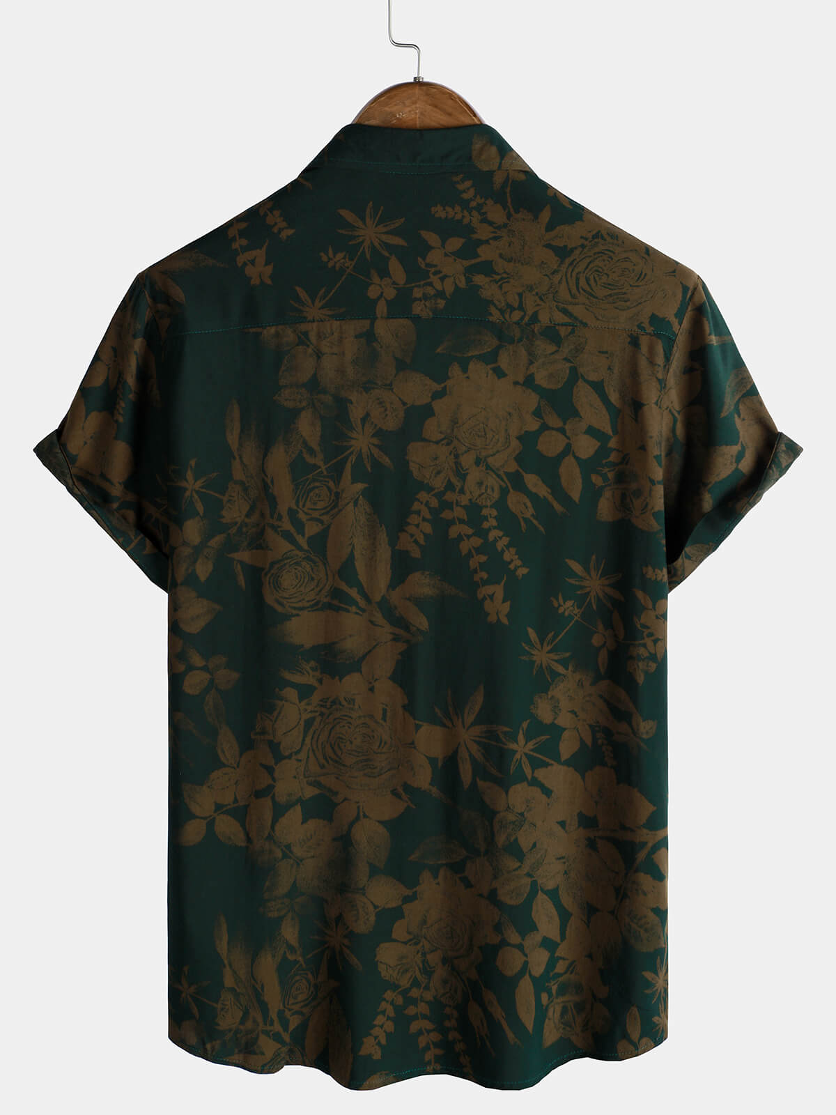 Chemise de villégiature à manches courtes et imprimé floral rétro pour homme