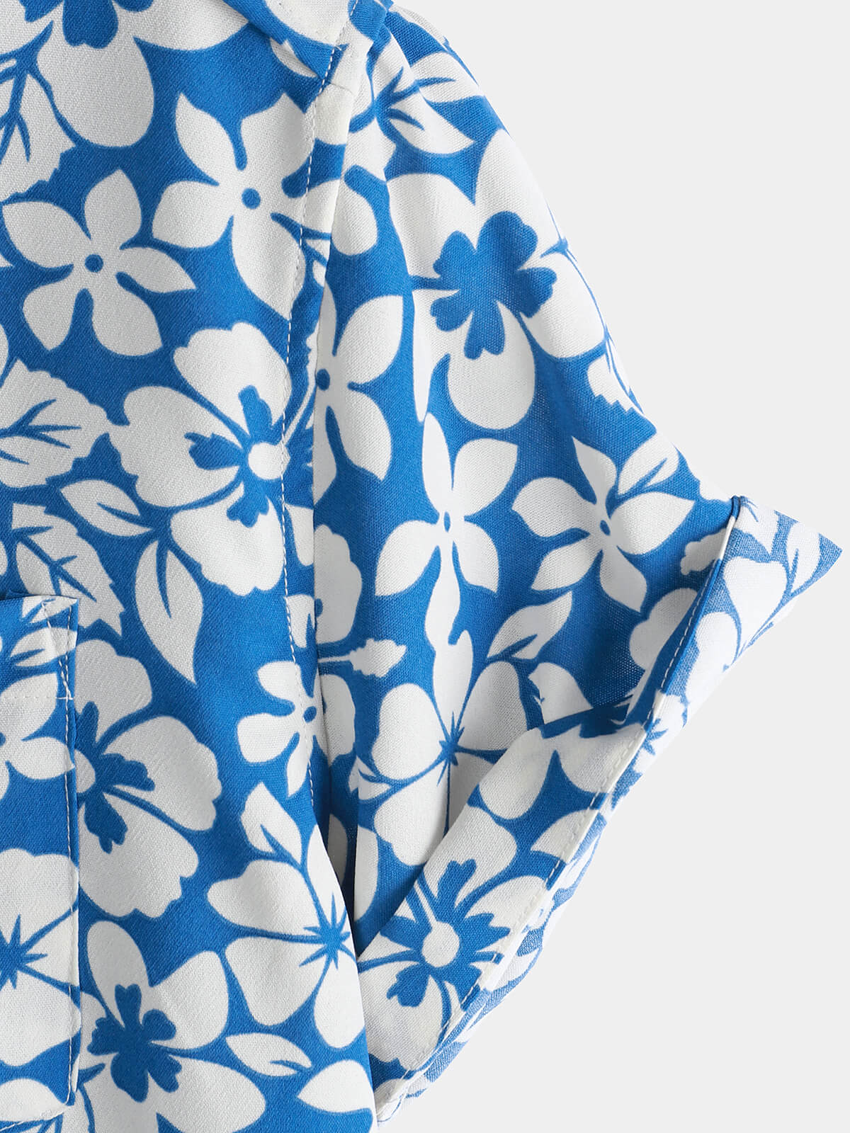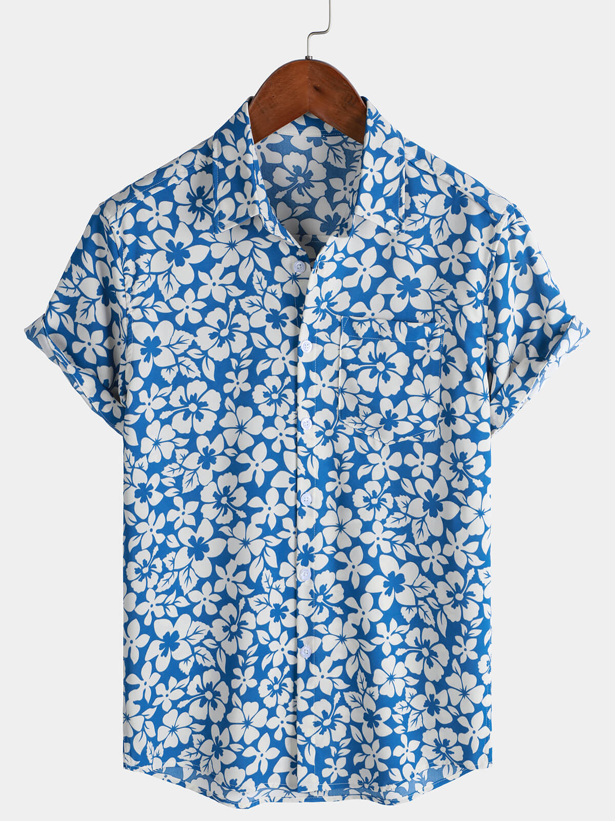 Chemise d'été décontractée à manches courtes pour homme, imprimé floral, style vacances