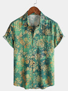 Chemise à manches courtes et poche à imprimé floral vert pour homme