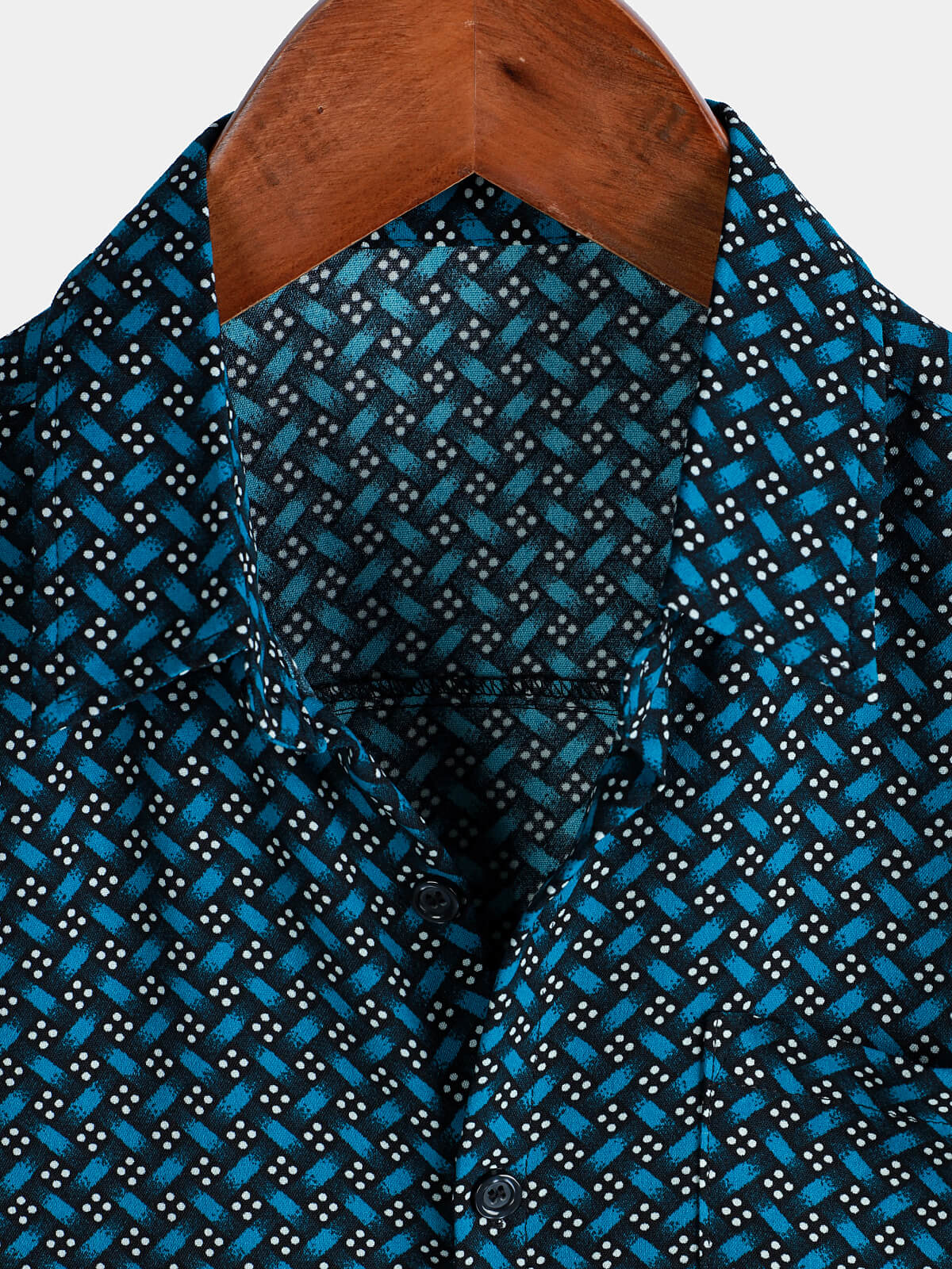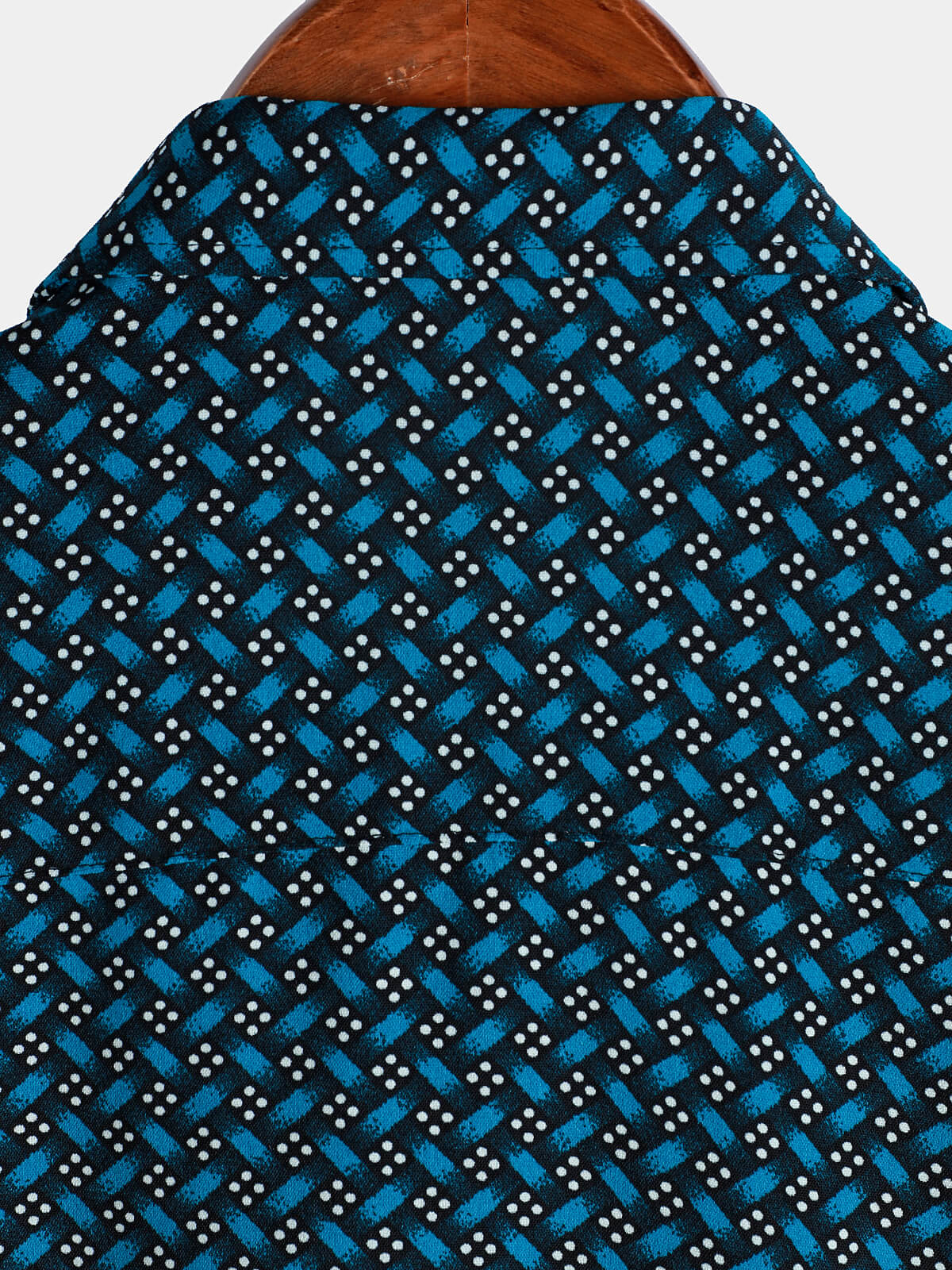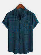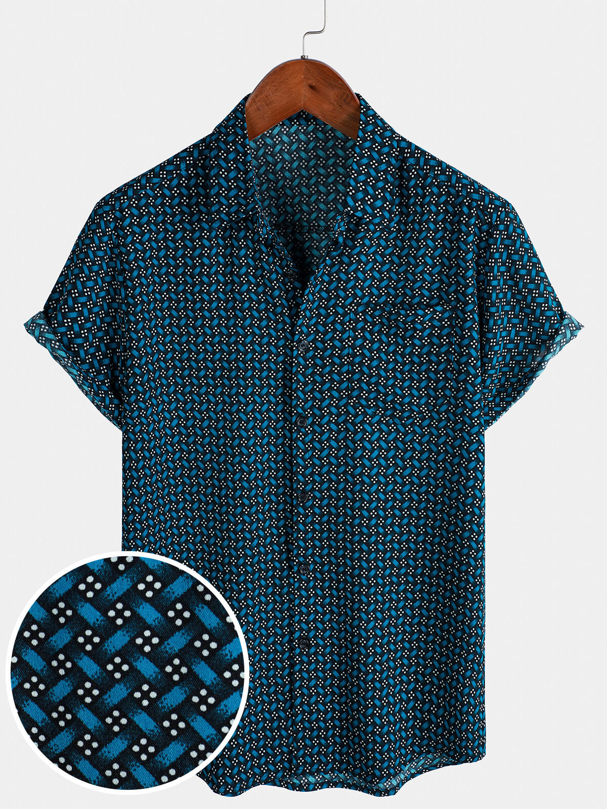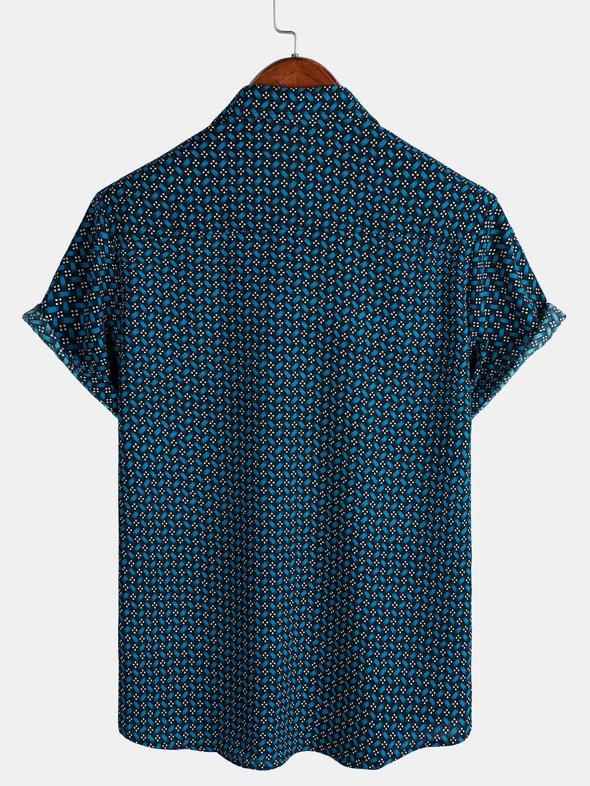 Chemise boutonnée à manches courtes pour homme, style décontracté, bleu, pour les vacances et l'été