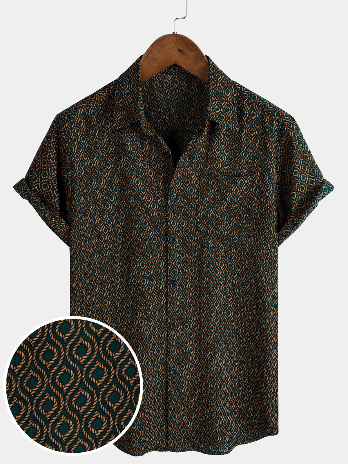Chemise boutonnée décontractée à manches courtes pour homme, style rétro, idéale pour les vacances