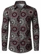 Chemise boutonnée à manches longues en coton imprimé mandala pour homme