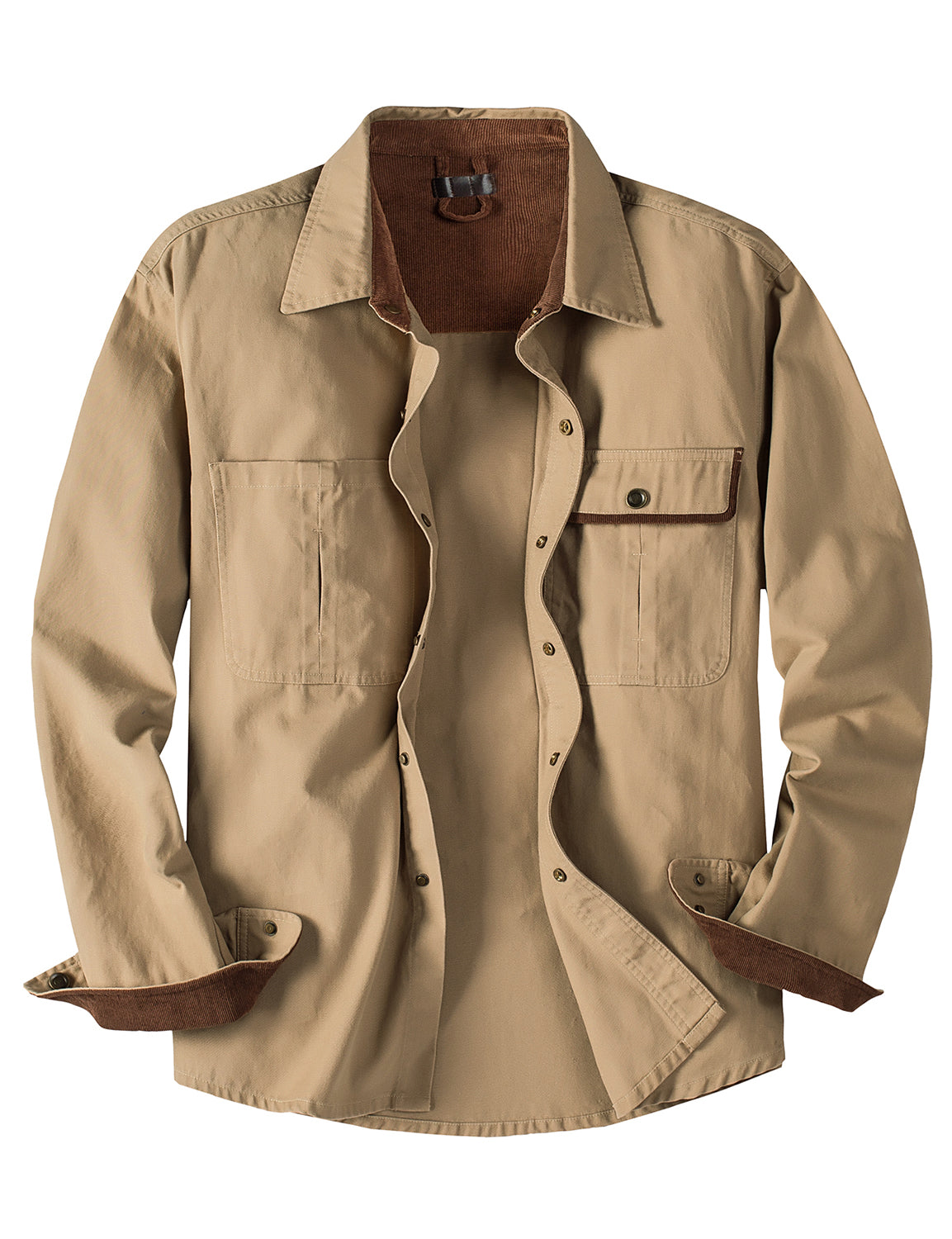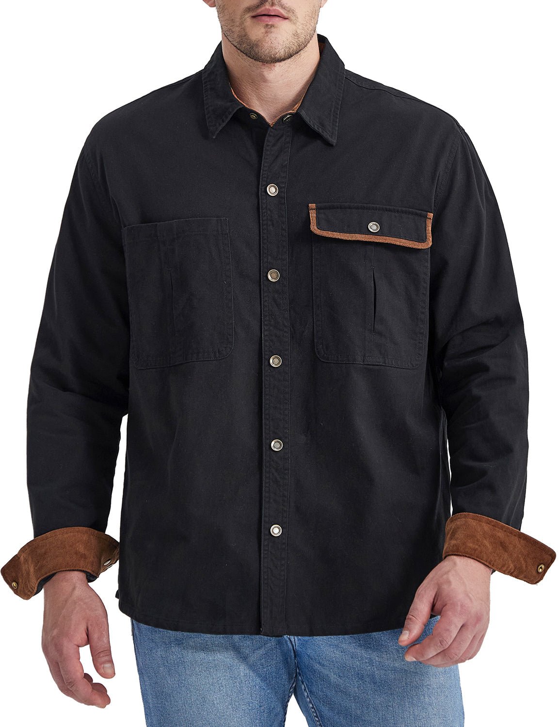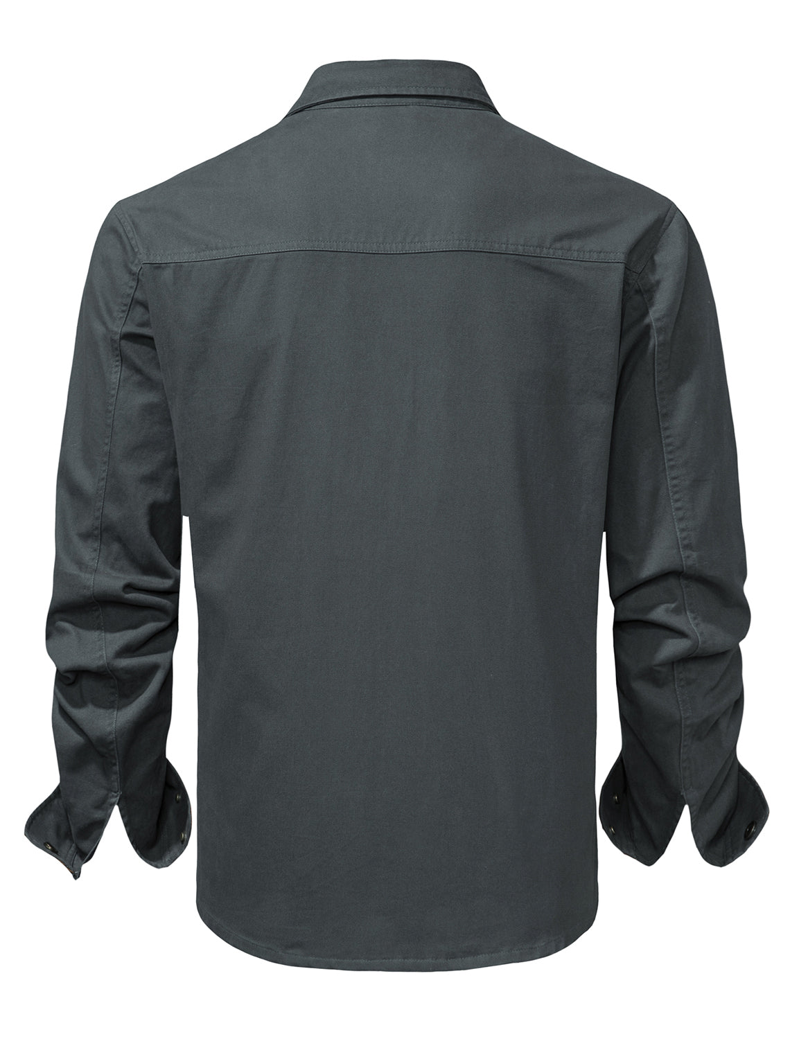 Chemise décontractée à manches longues en coton avec poche boutonnée pour homme