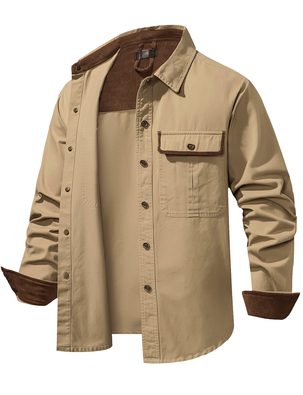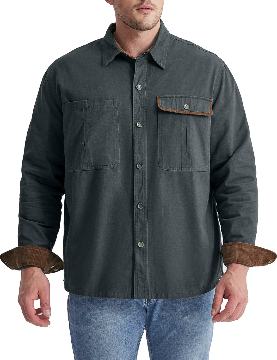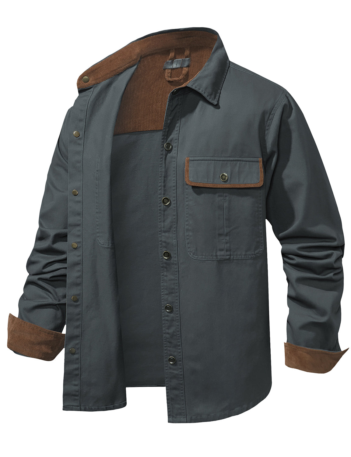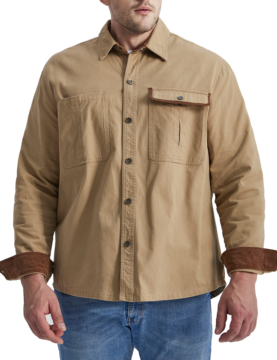 Chemise décontractée à manches longues en coton avec poche boutonnée pour homme