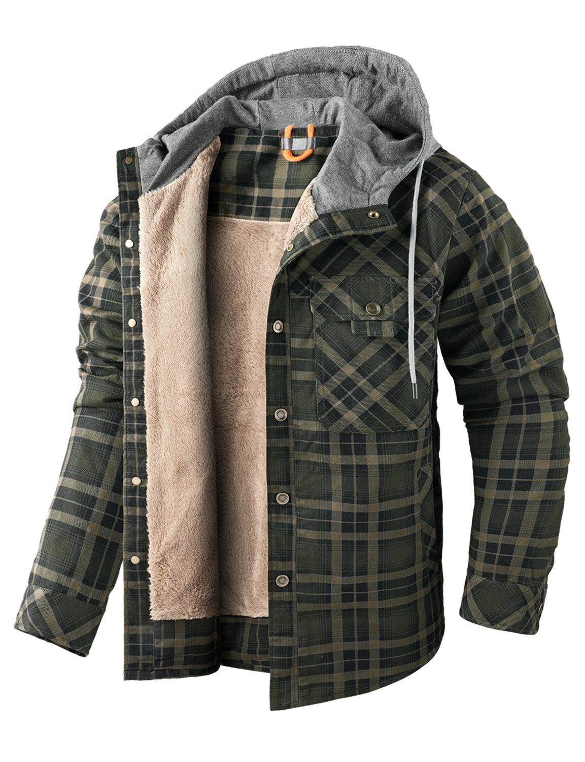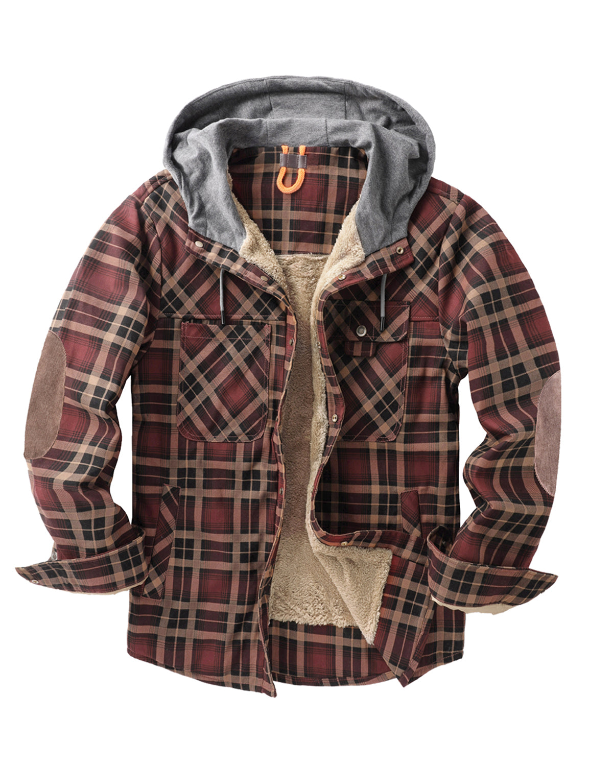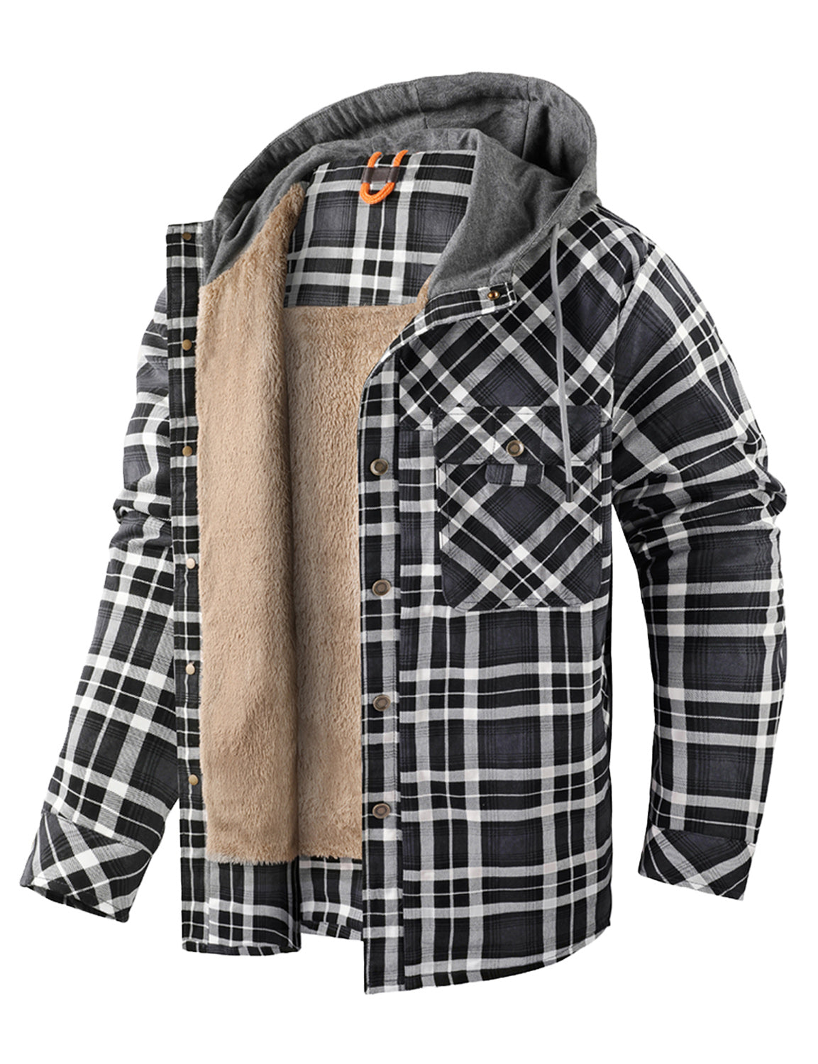 Veste décontractée à capuche à carreaux chauds à manches longues pour hommes