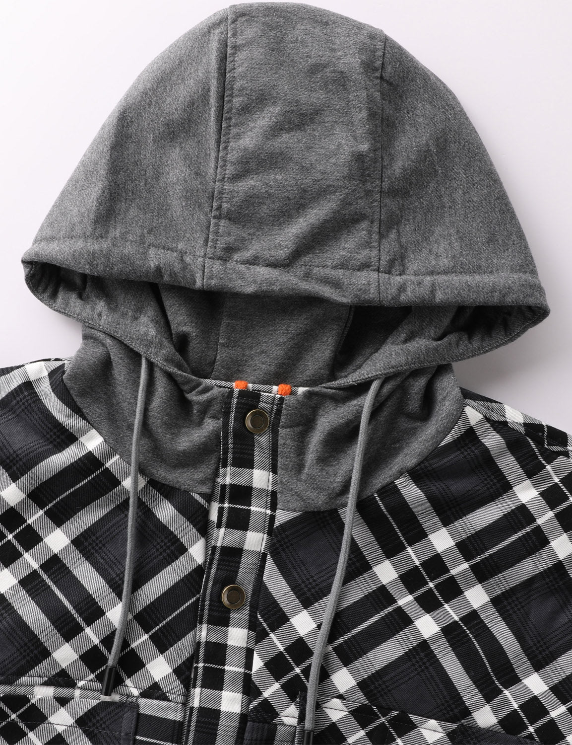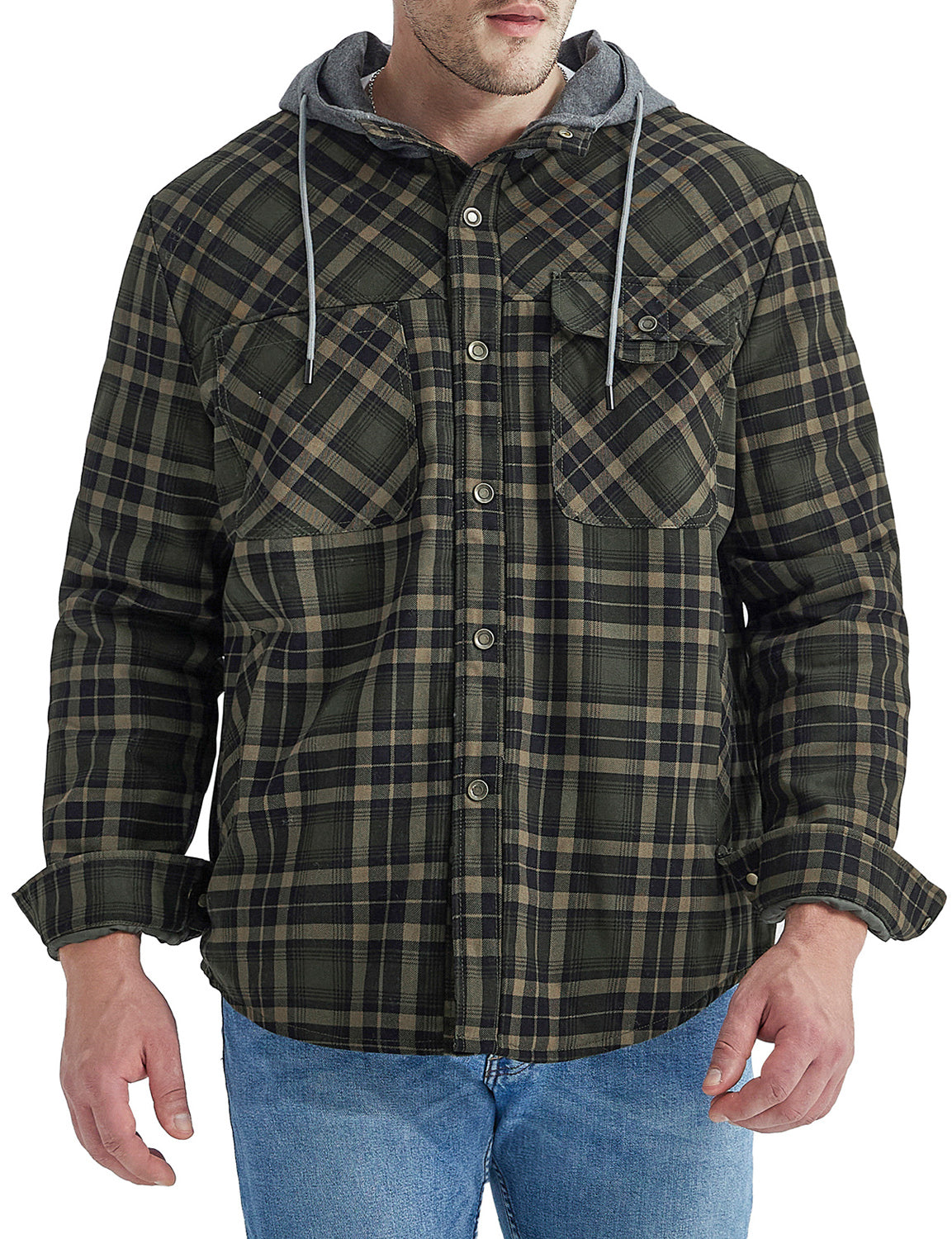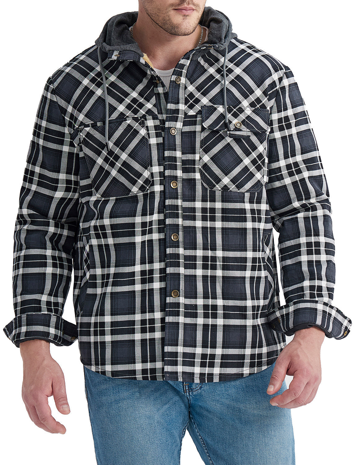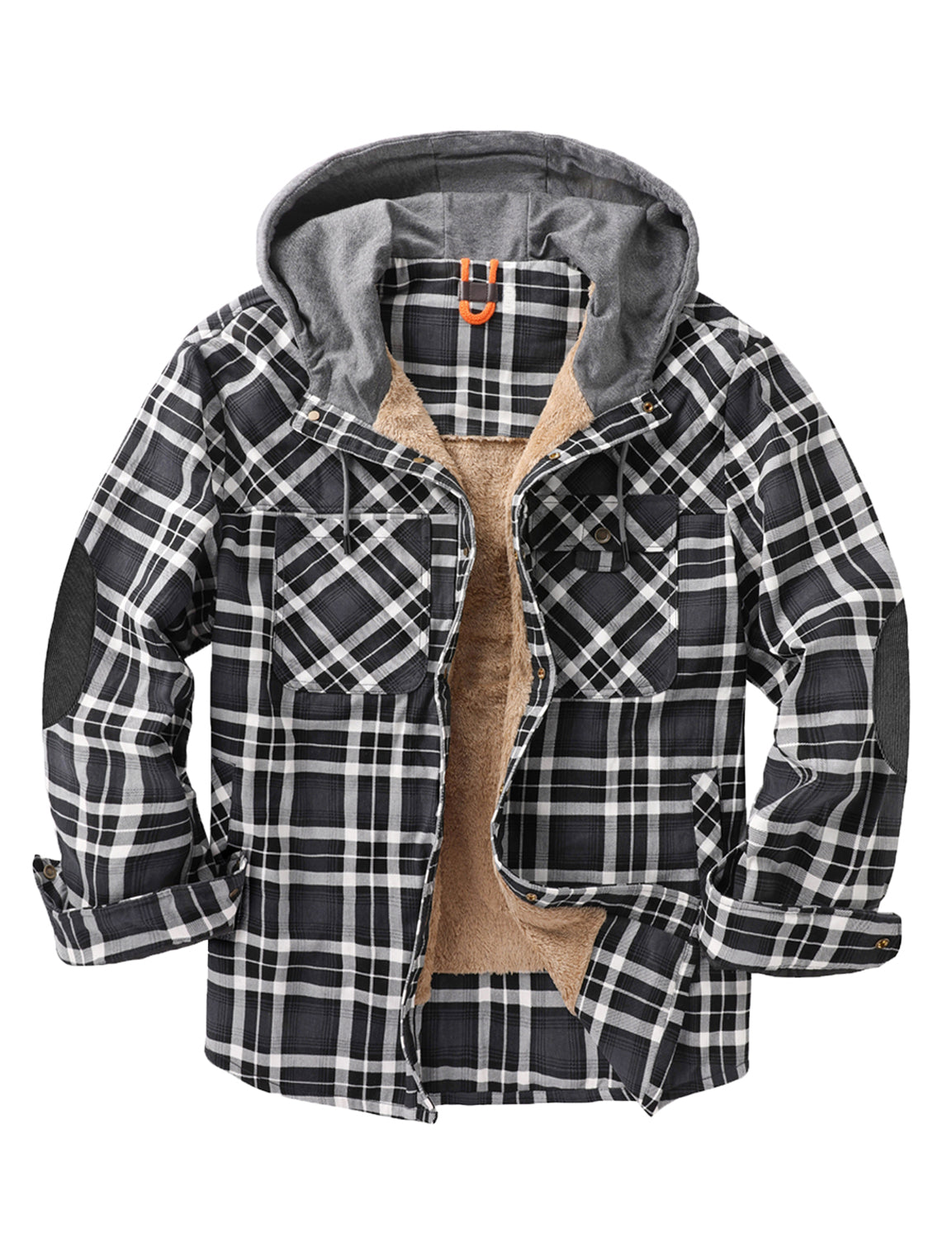 Veste décontractée à capuche à carreaux chauds à manches longues pour hommes