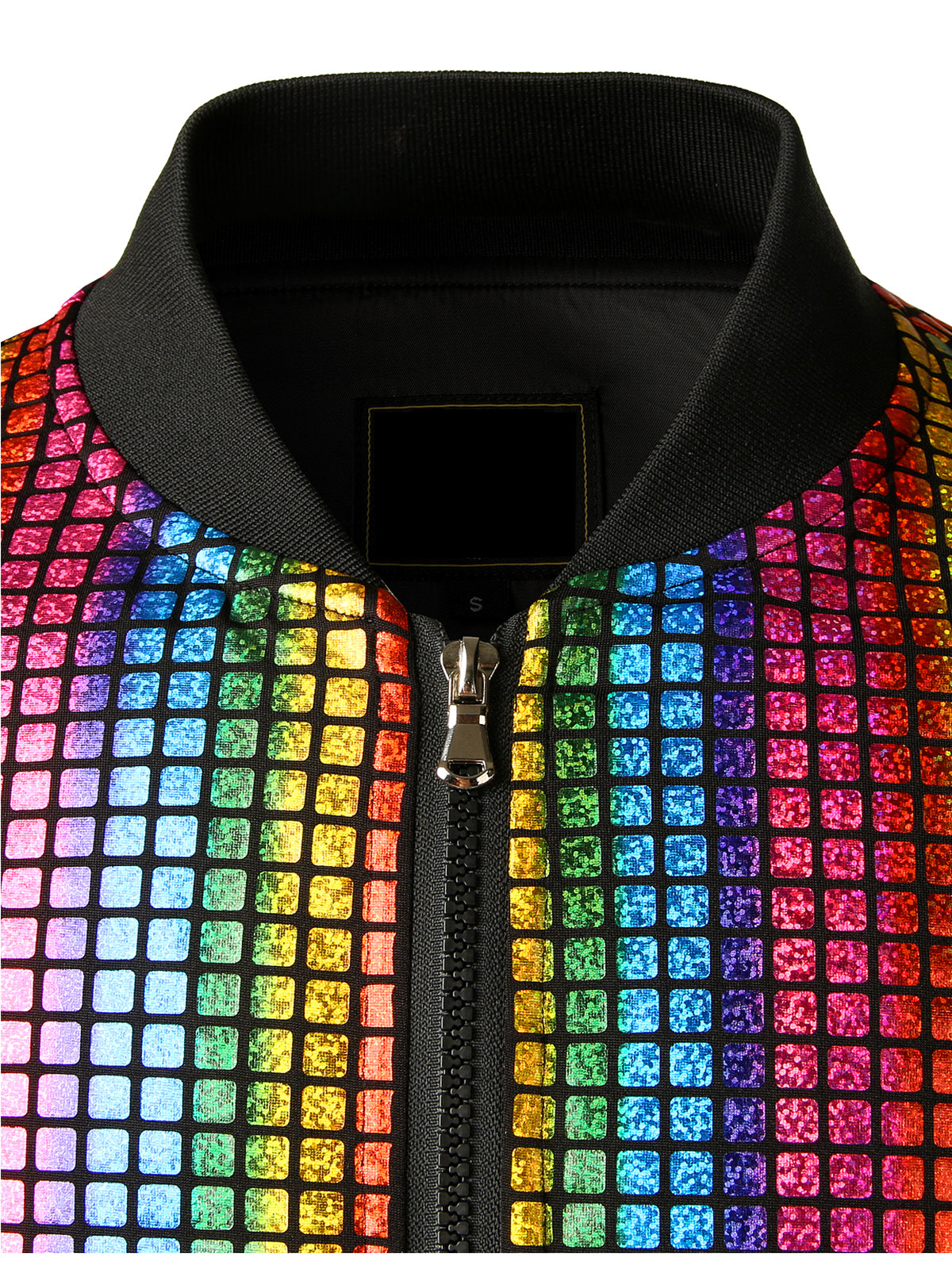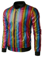 Blouson zippé paillettes métalliques homme costume de soirée disco