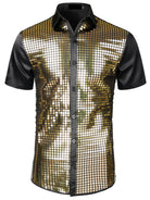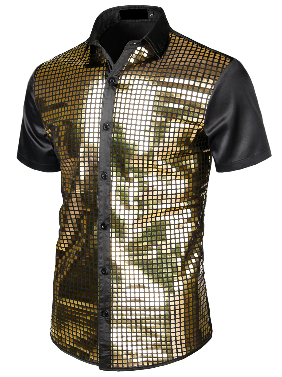 Chemise Habillée Homme Paillettes Dorées Chemises Boutonnées Costume De Soirée Disco