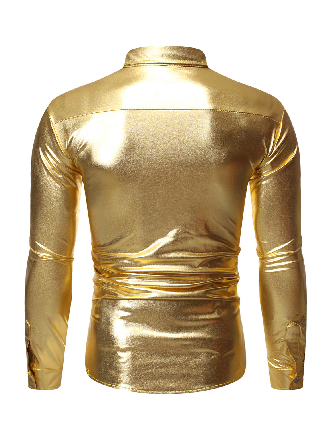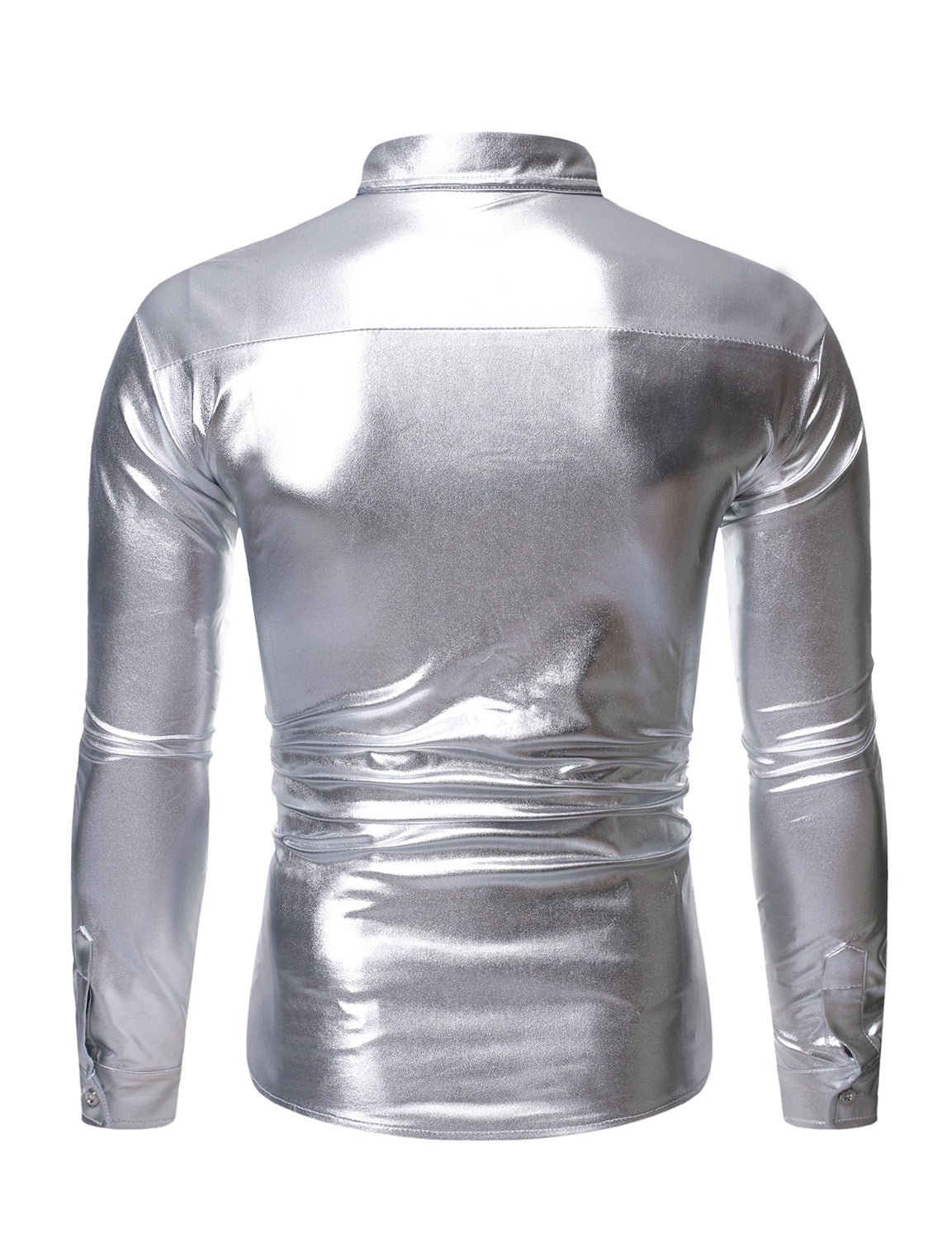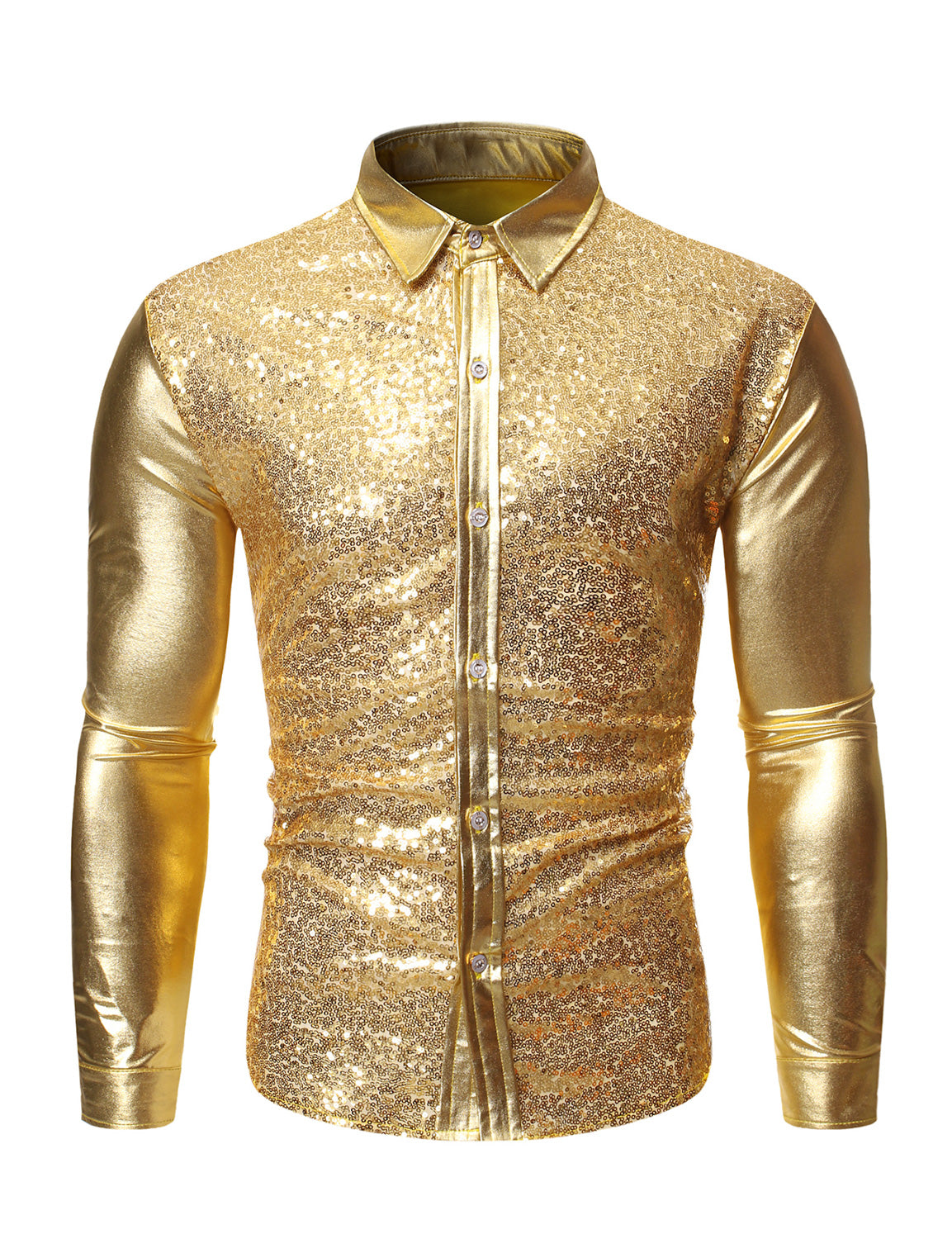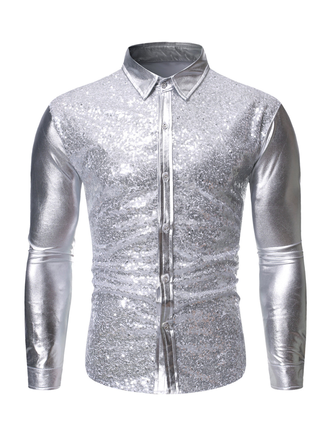 Chemise à manches longues boutonnée à sequins métalliques pour hommes