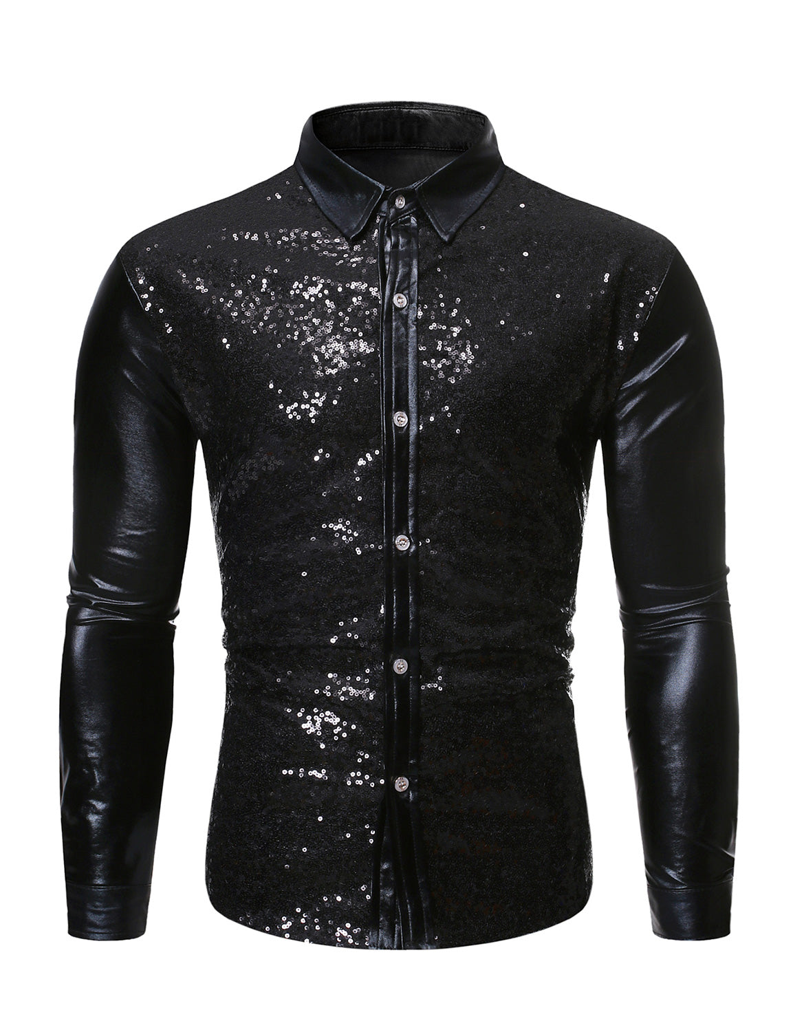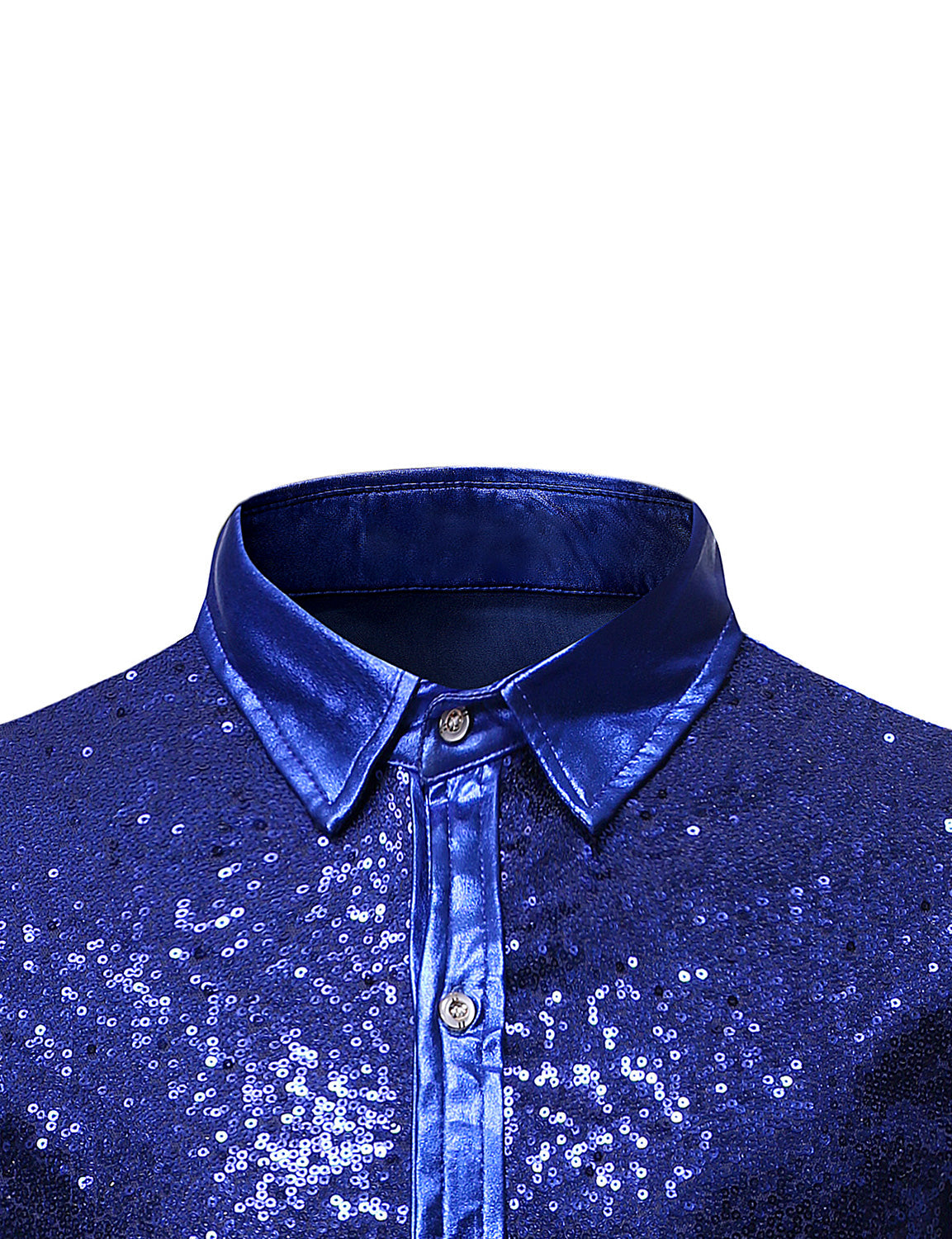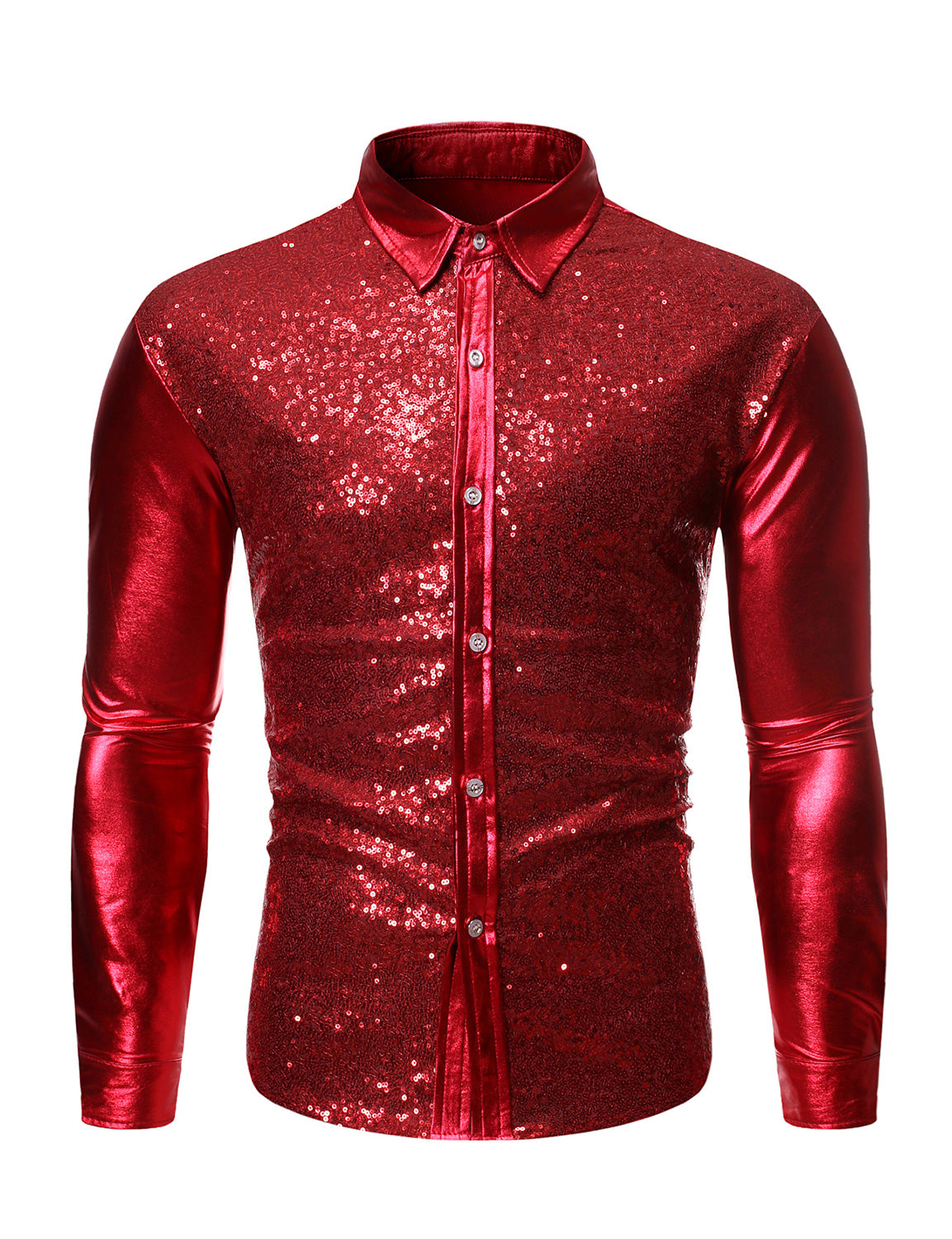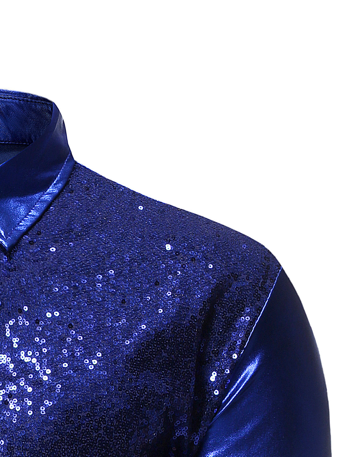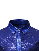 Chemise à manches longues boutonnée à sequins métalliques pour hommes