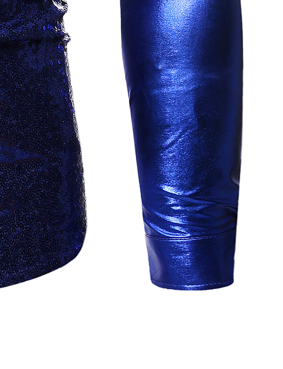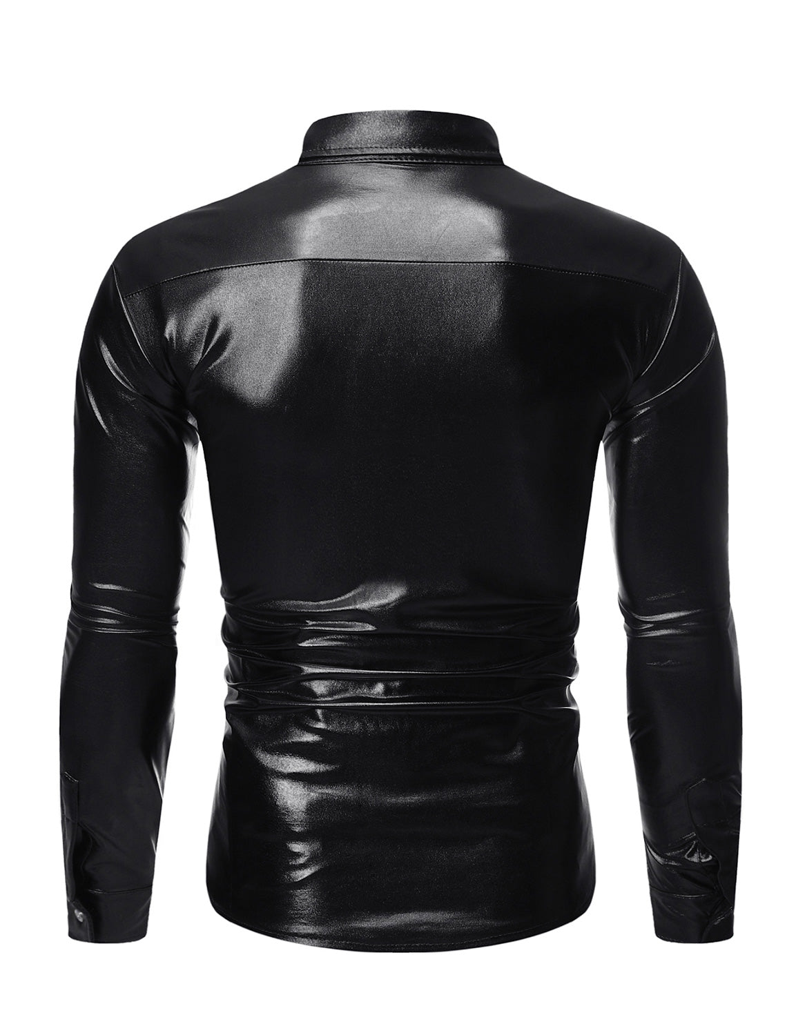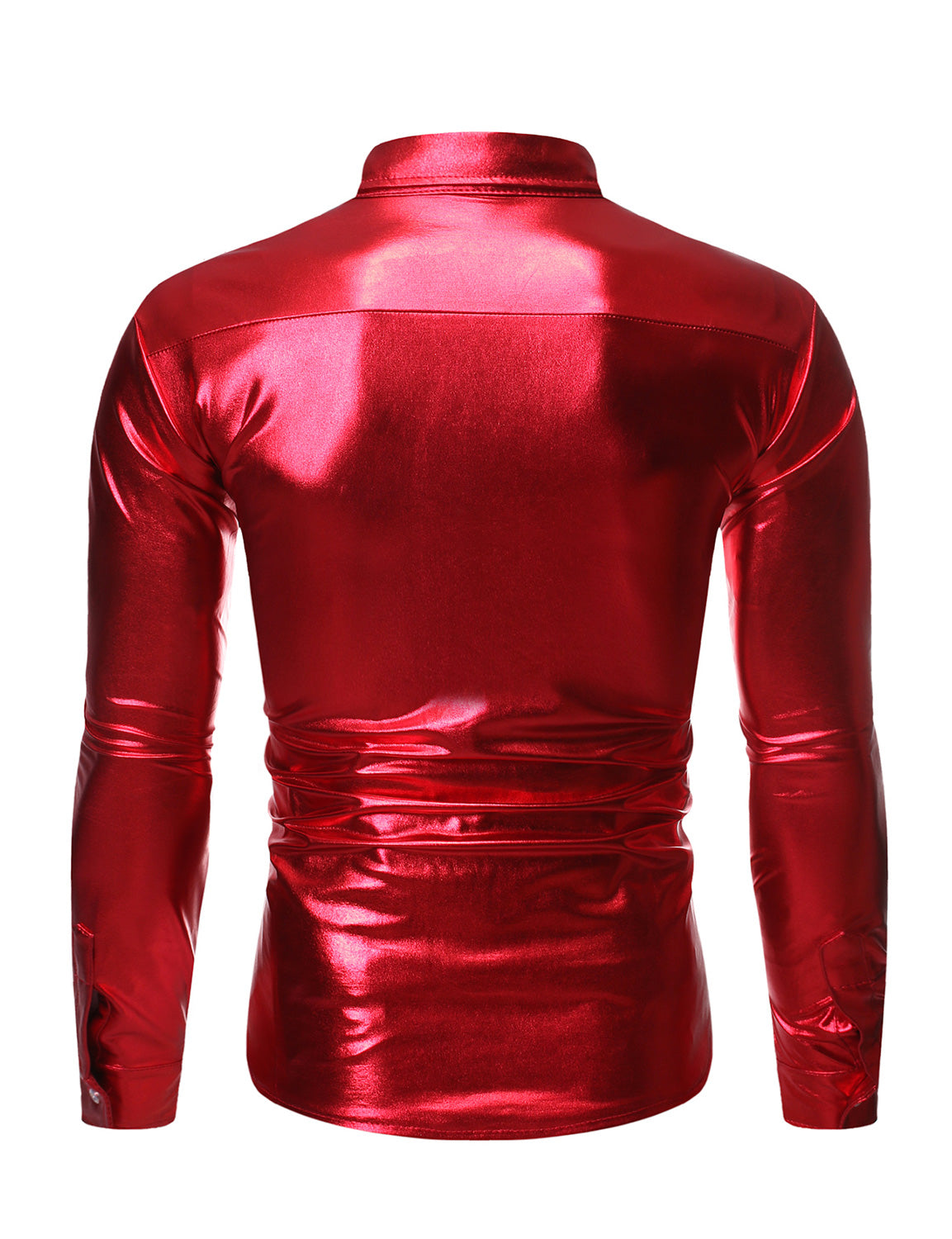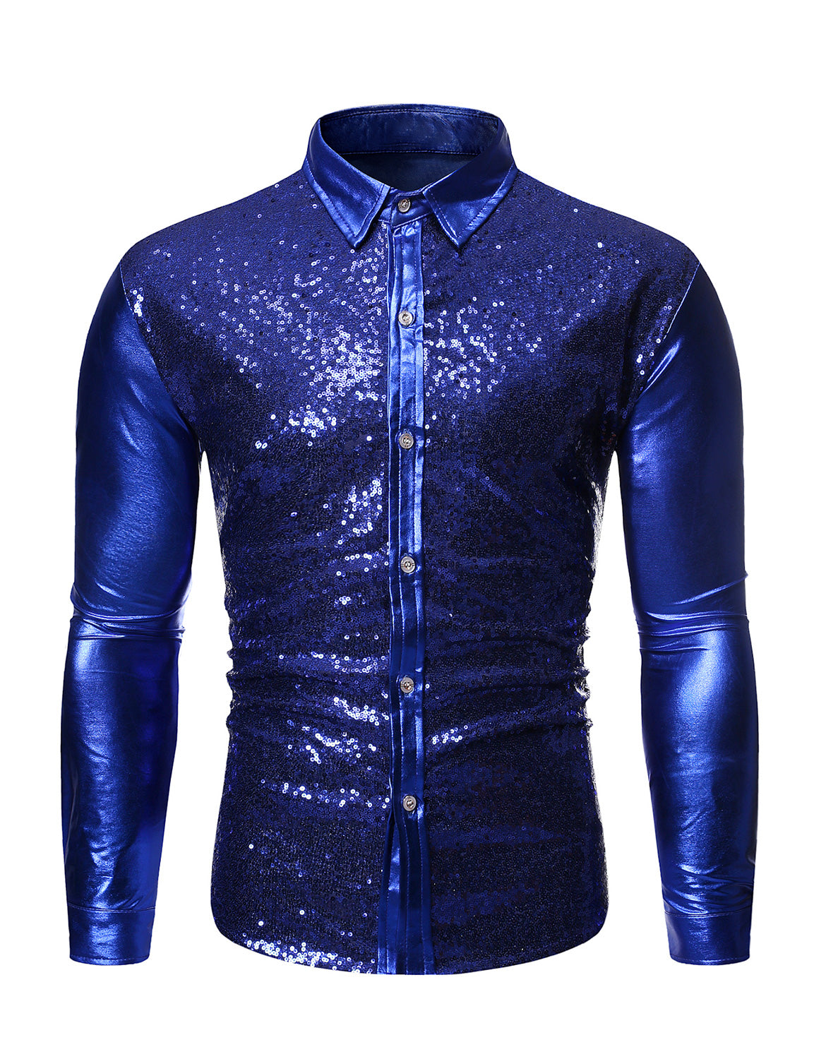 Chemise à manches longues boutonnée à sequins métalliques pour hommes